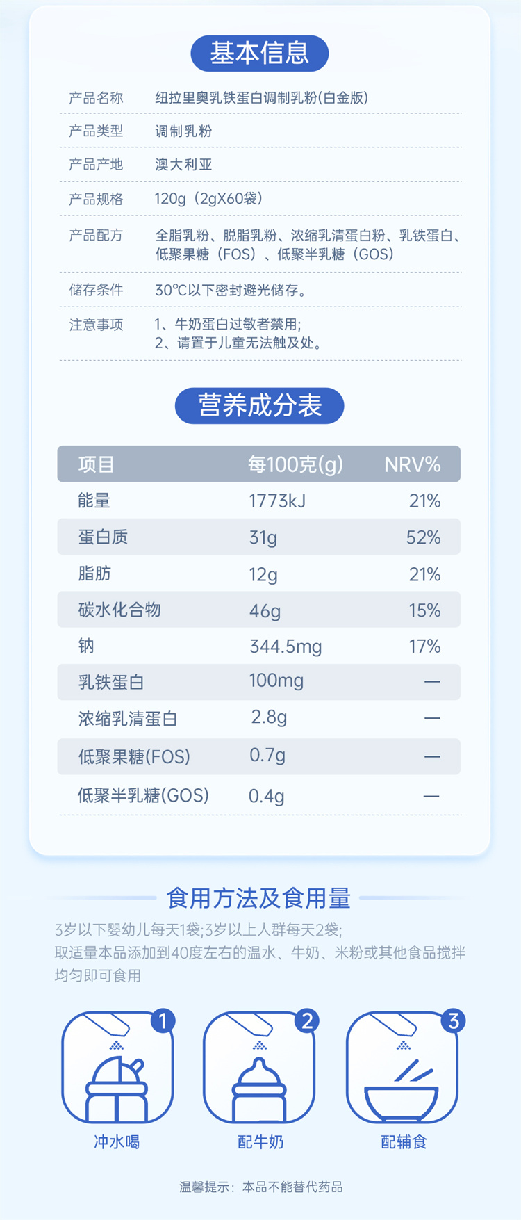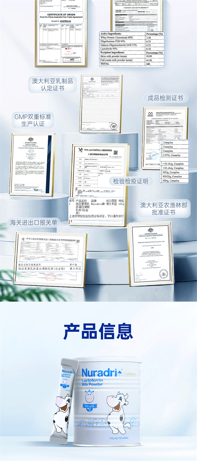 商品名称:澳洲 纽拉里奥(Nuradrio)乳铁蛋白粉白金版 2g x60袋