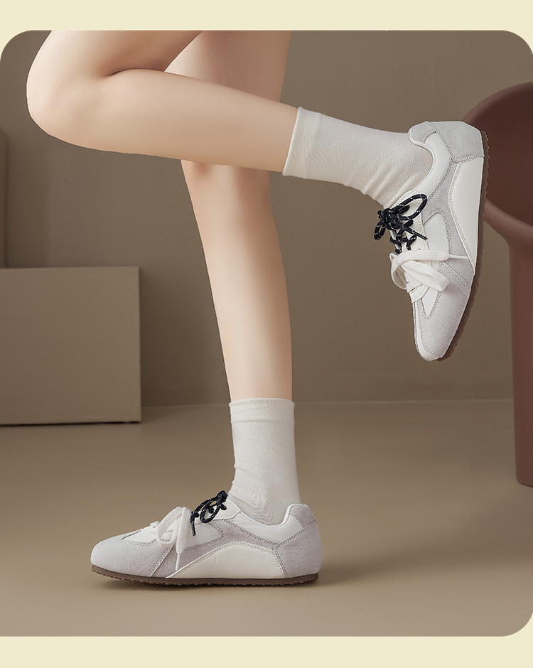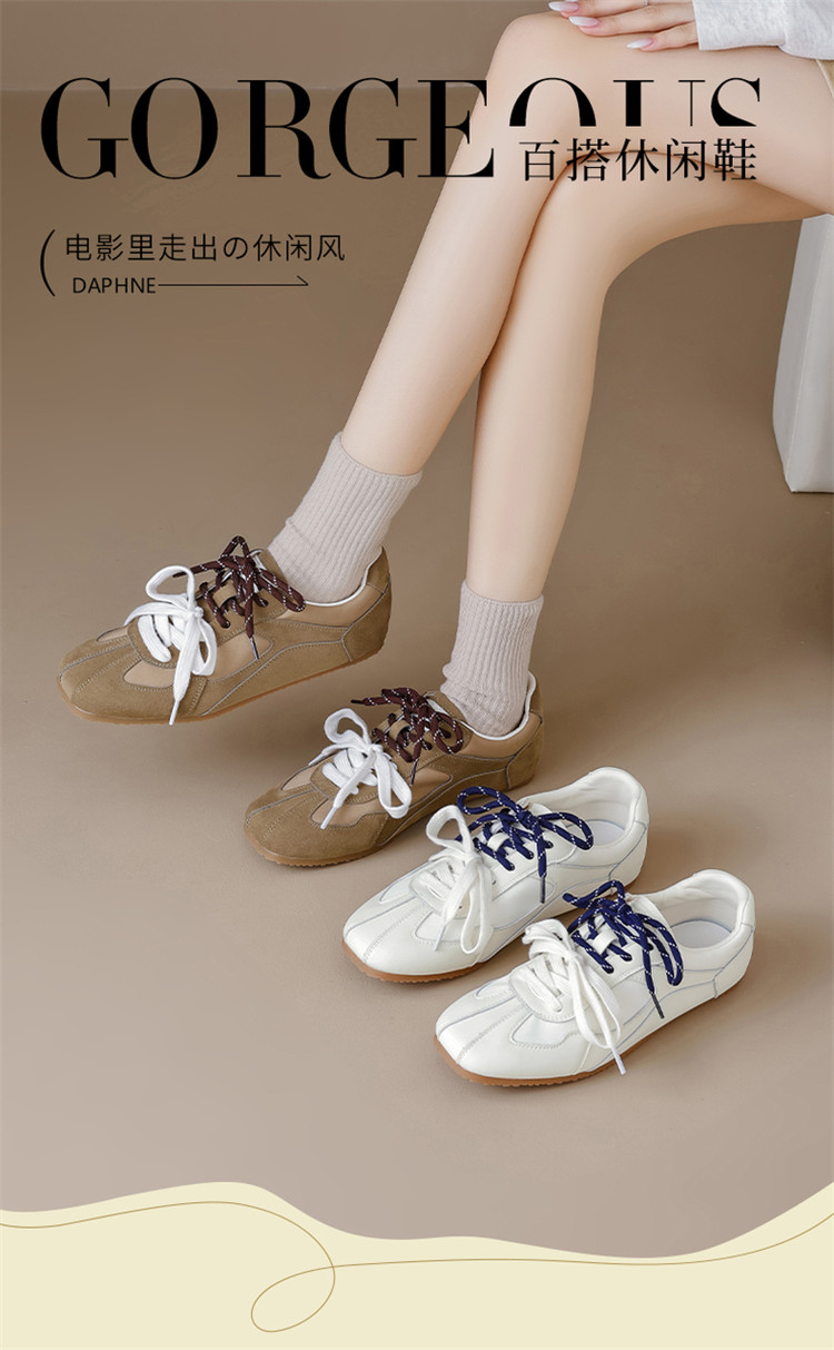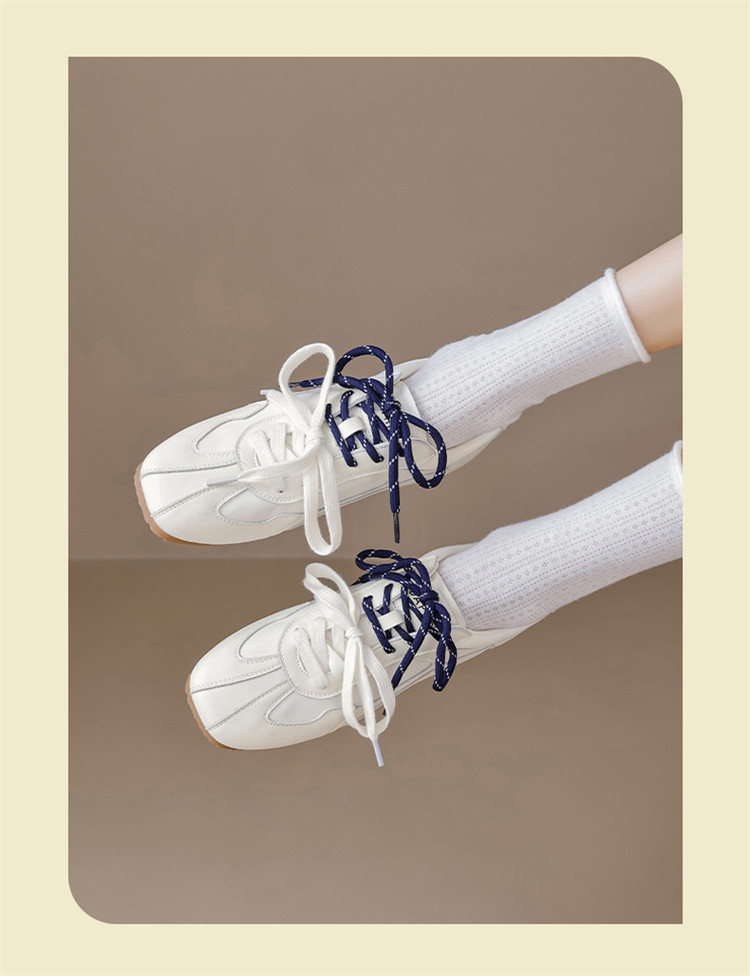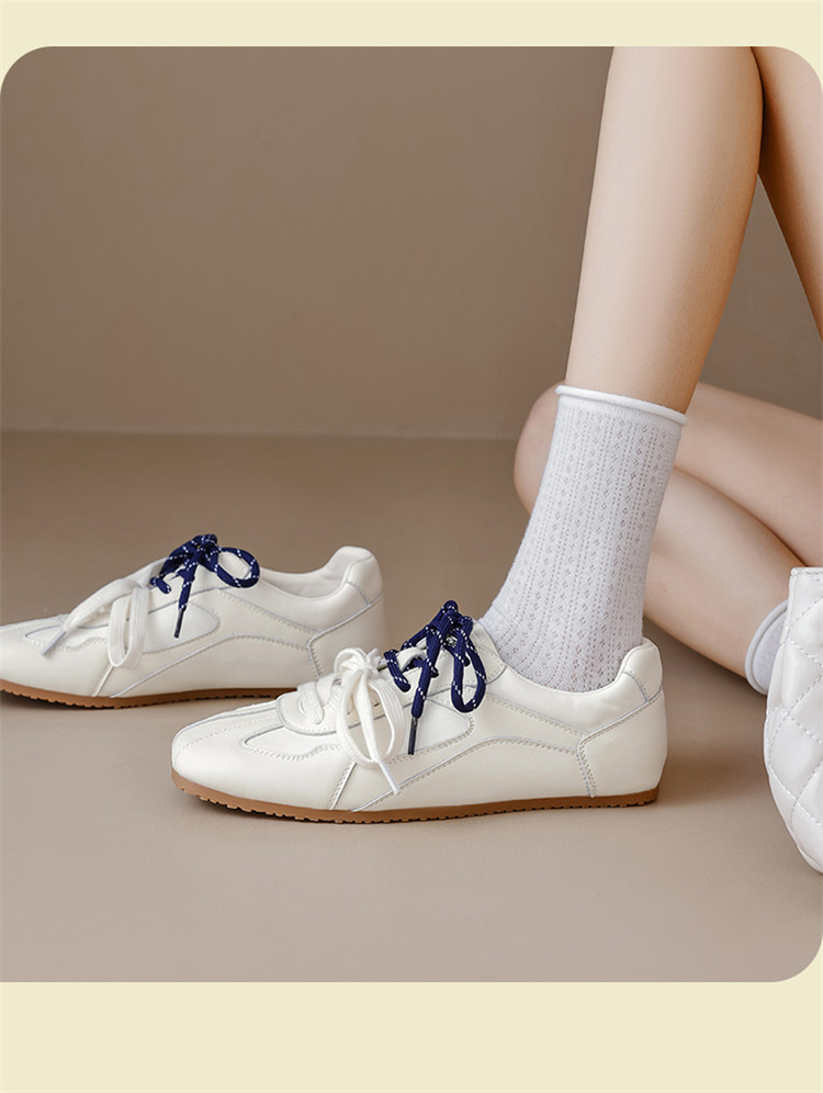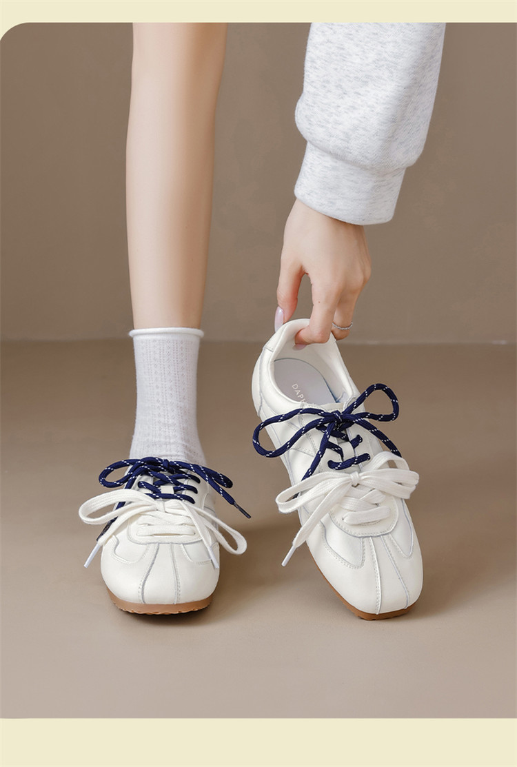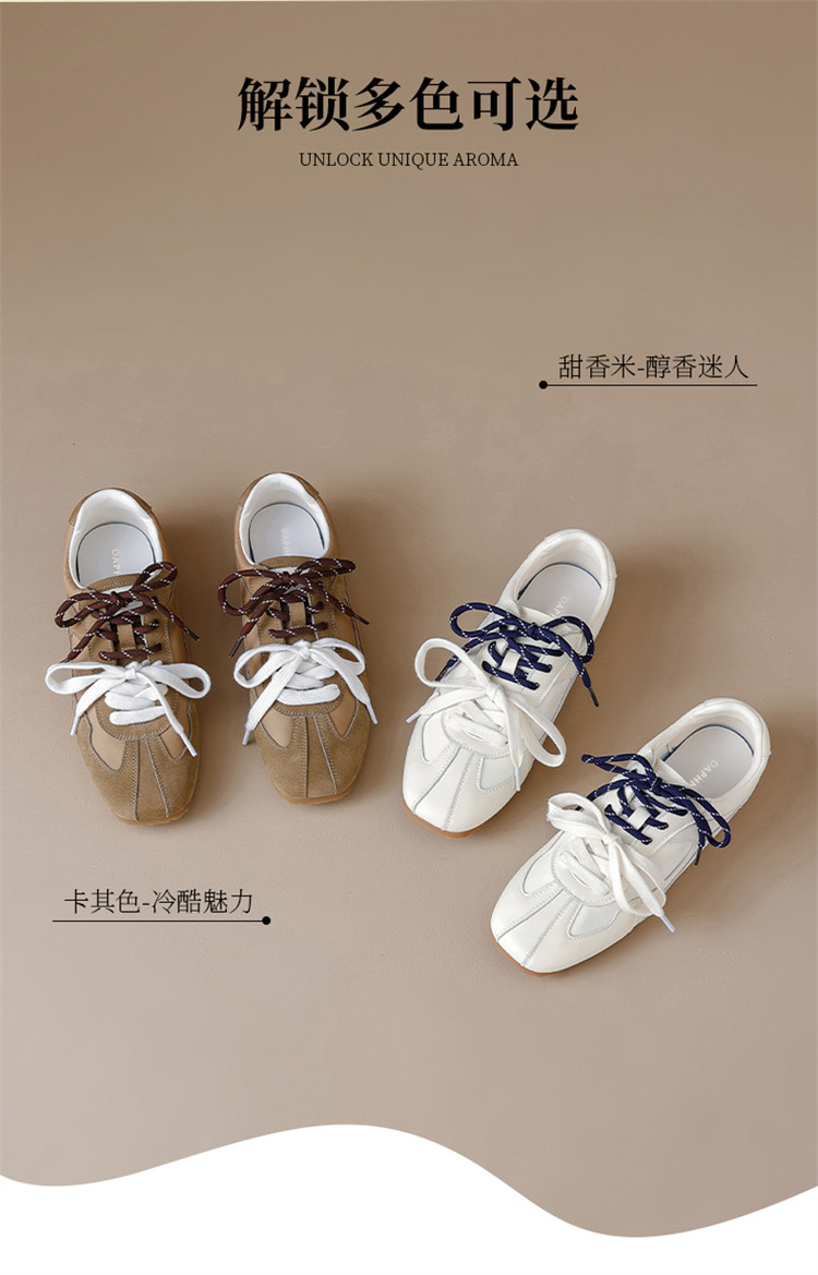 春季百搭复古双鞋带设计轻便运动休闲鞋子芭蕾风平底德训鞋女鞋 039194