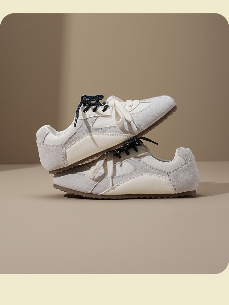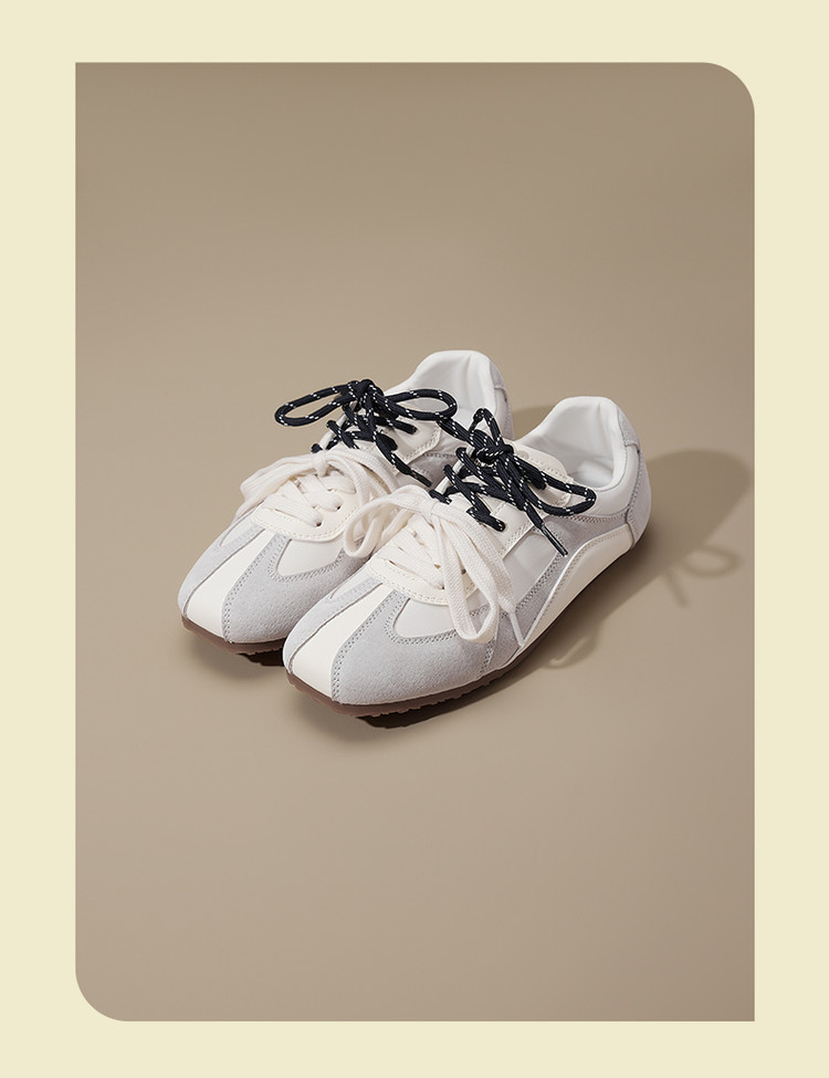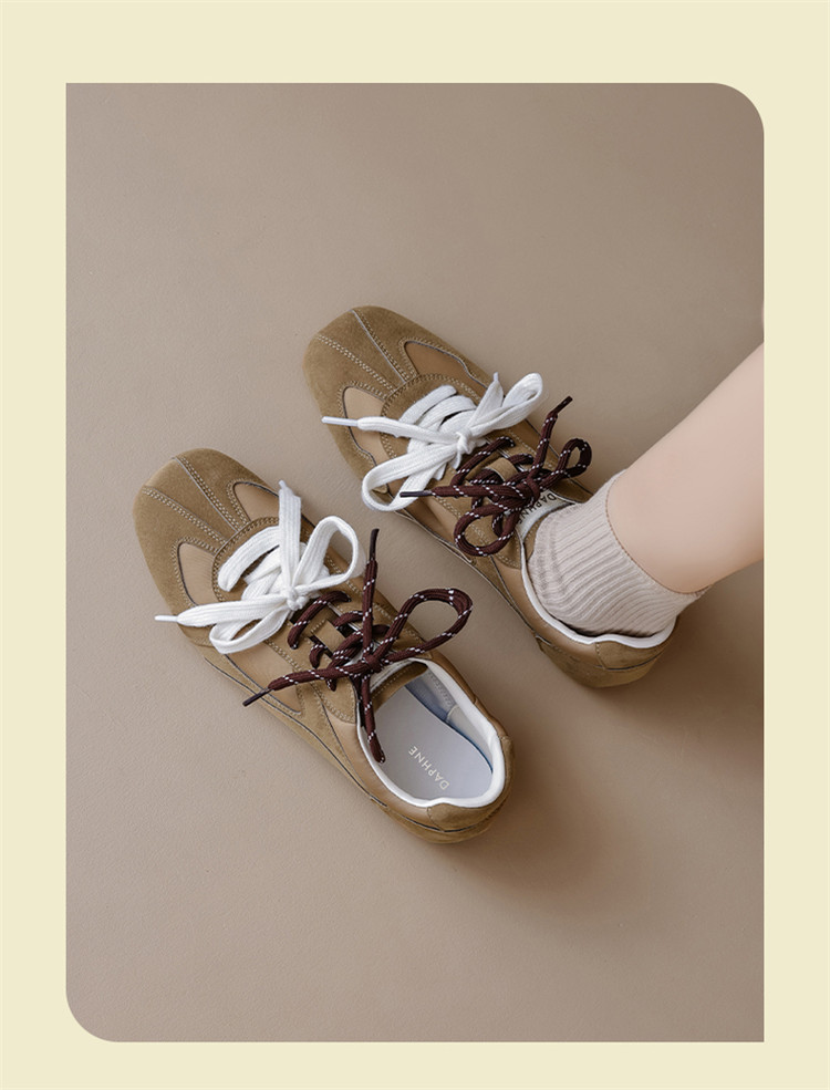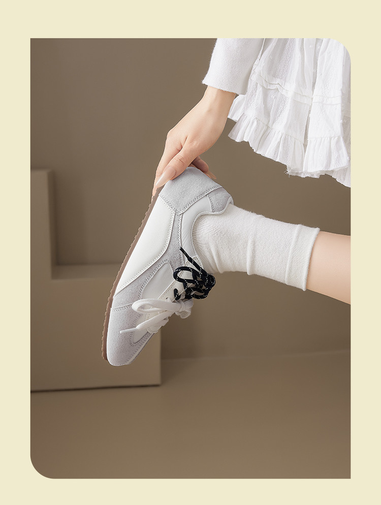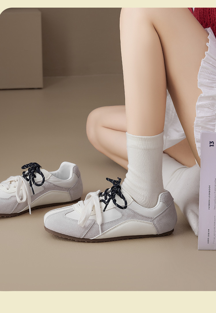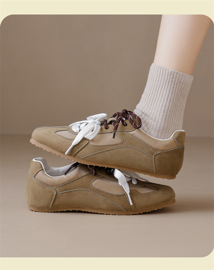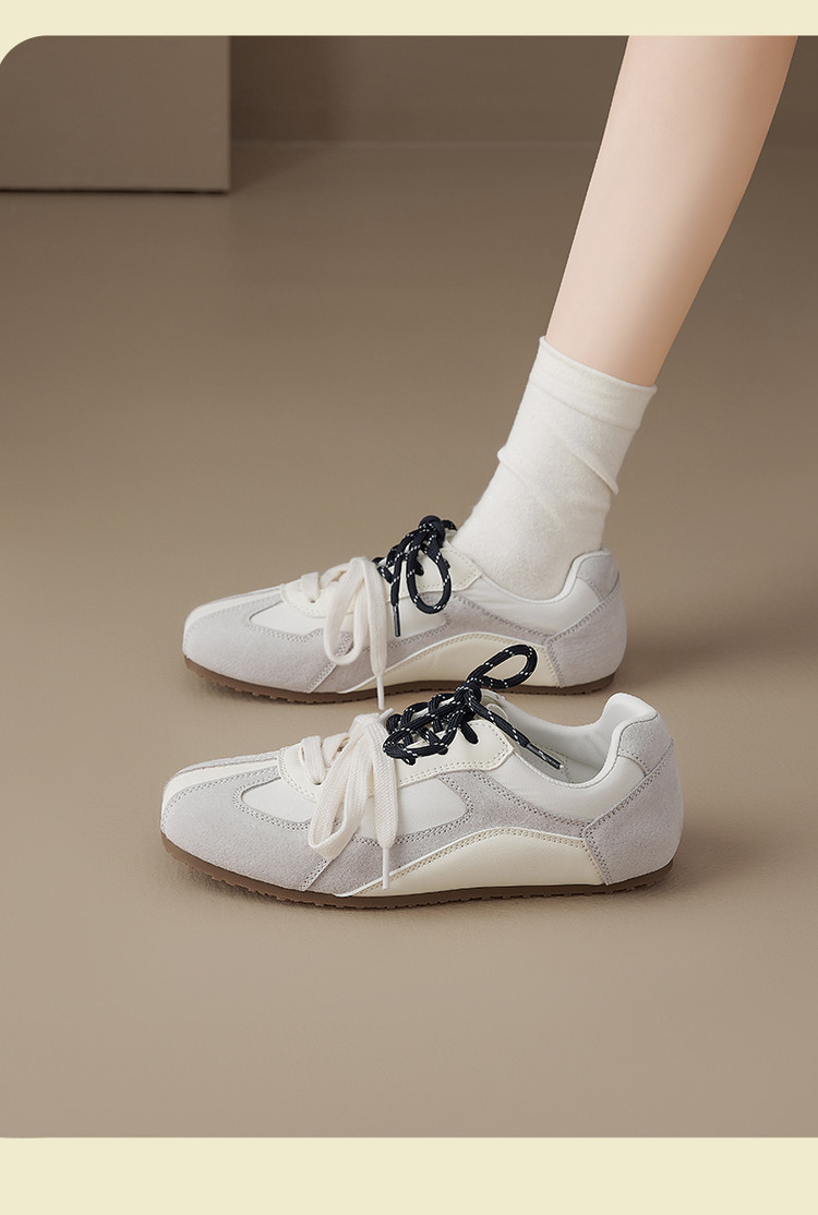 春季百搭复古双鞋带设计轻便运动休闲鞋子芭蕾风平底德训鞋女鞋 039194