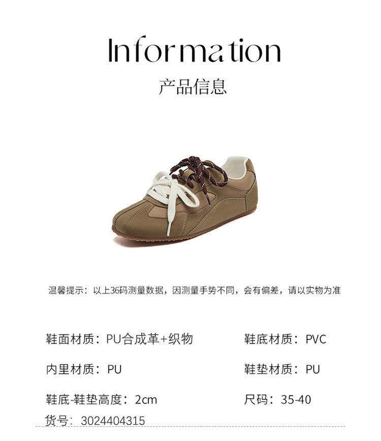 商品名称:春季百搭复古双鞋带设计轻便运动休闲鞋子芭蕾风平底德训鞋女鞋 039194