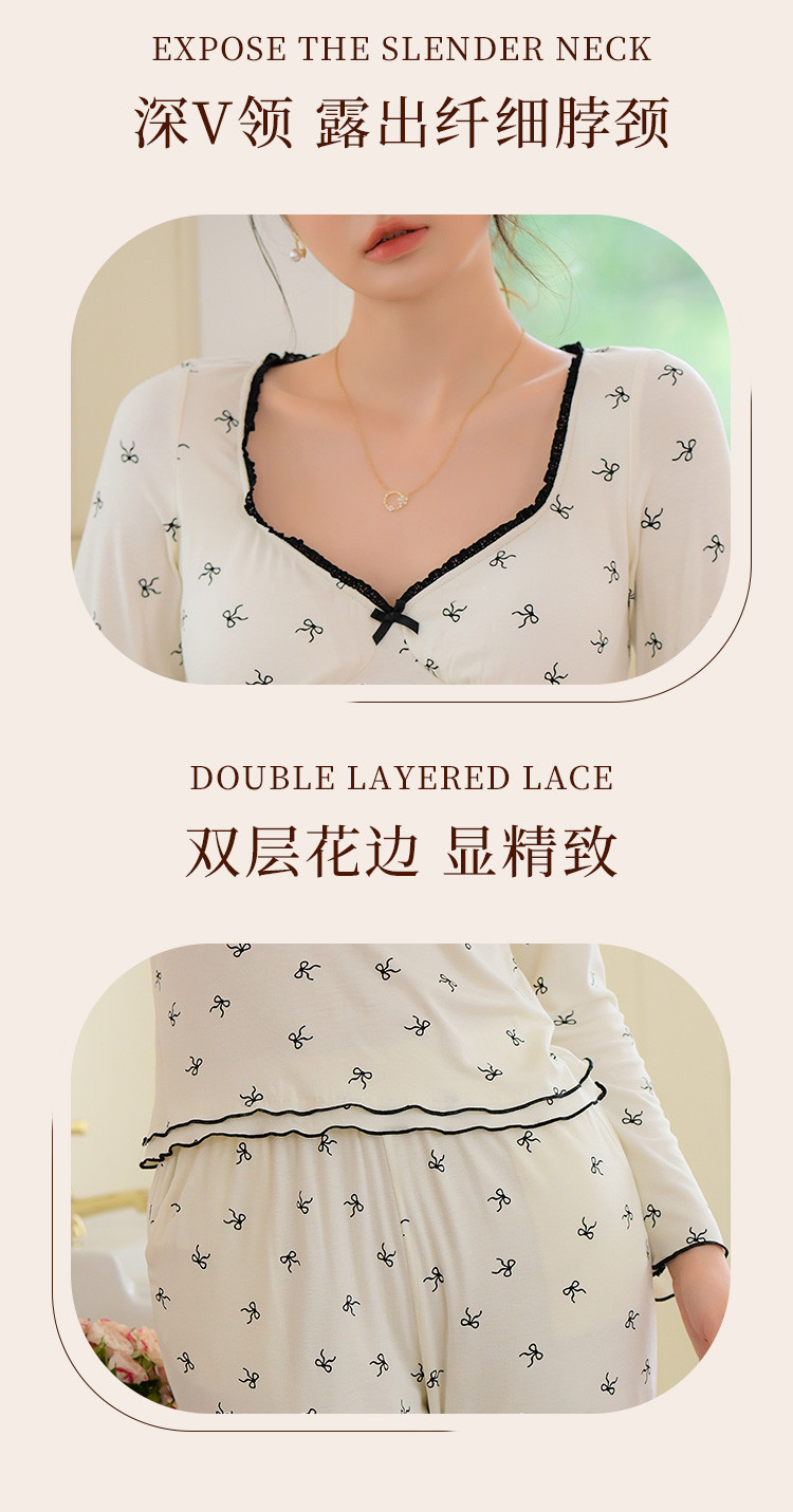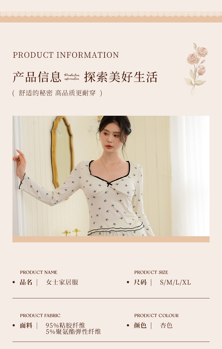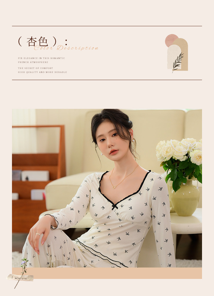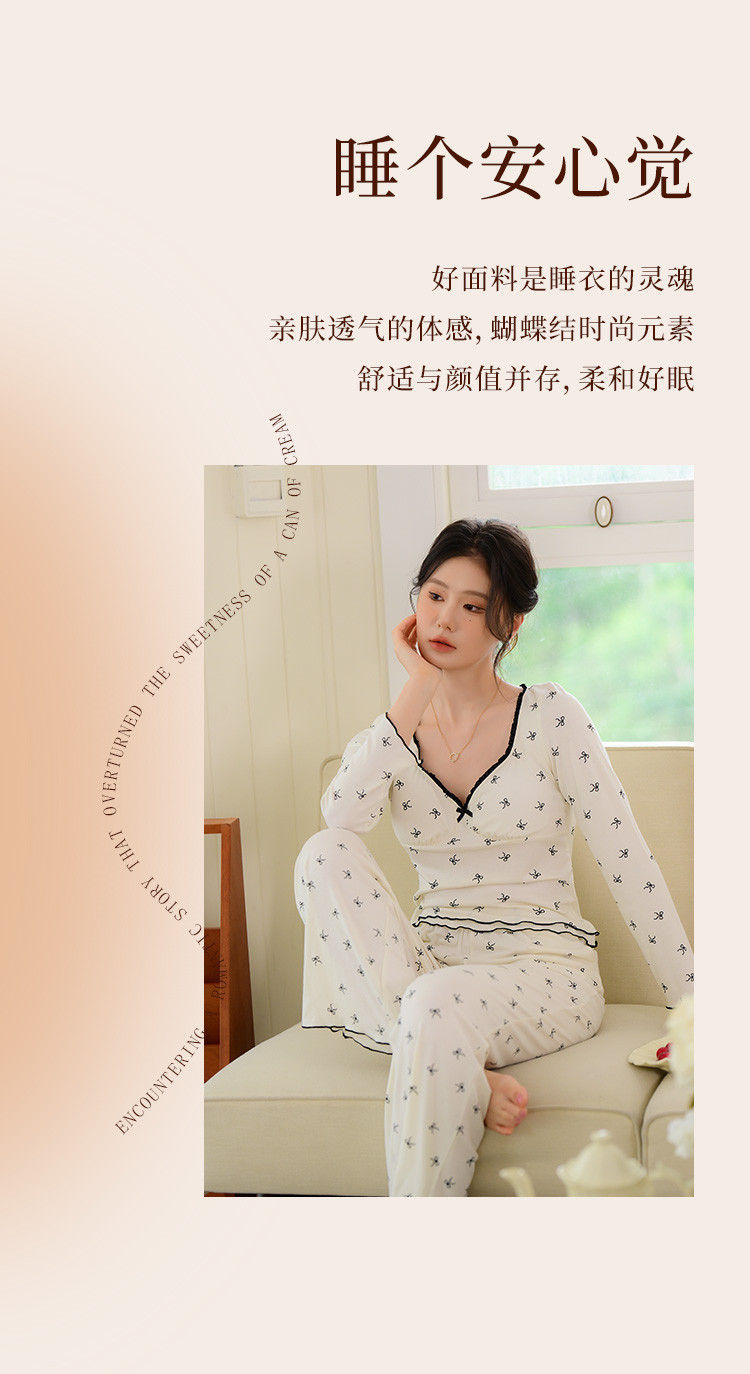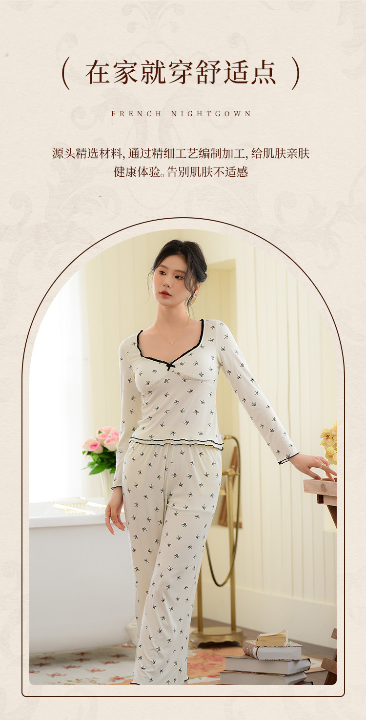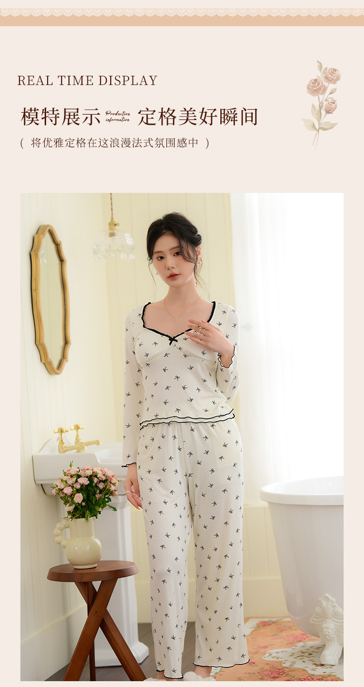 商品名称:【带胸垫免穿文胸】法式浪漫睡衣女春秋印花长袖家居服套装可外穿 188107