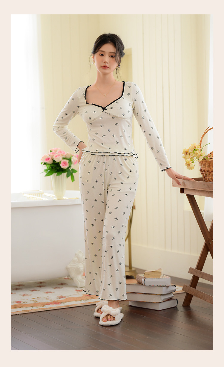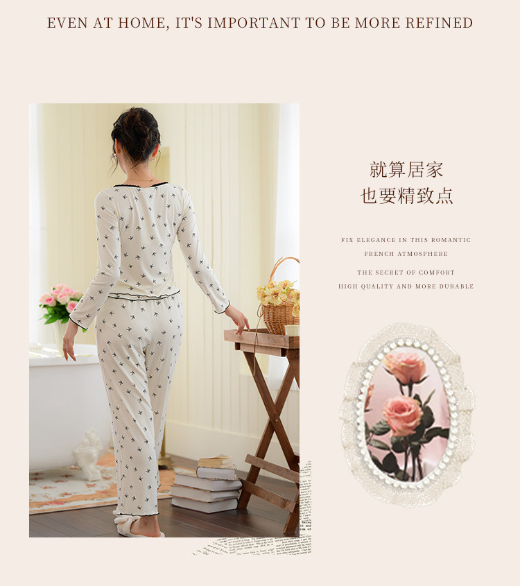 【带胸垫免穿文胸】法式浪漫睡衣女春秋印花长袖家居服套装可外穿 188107