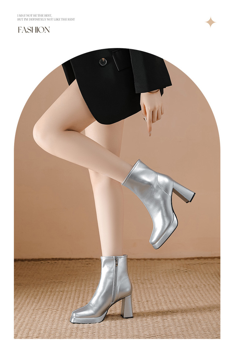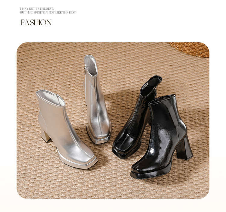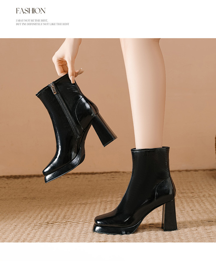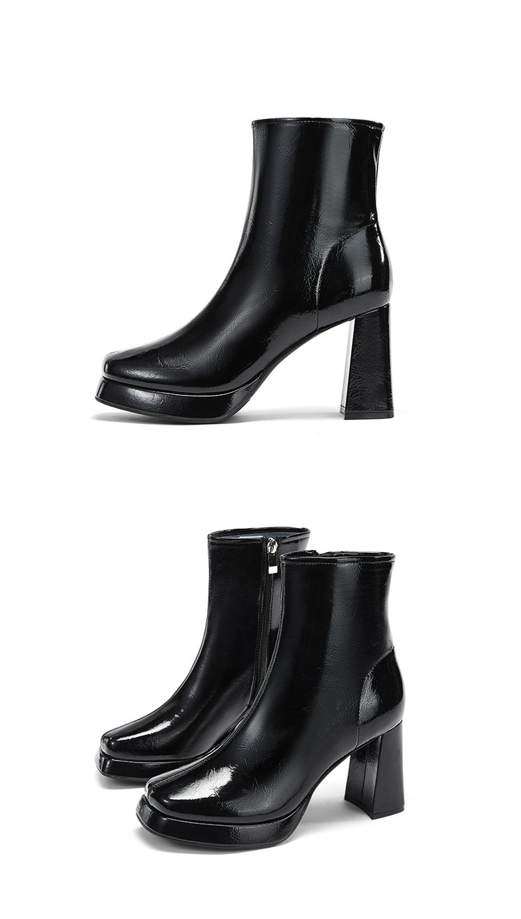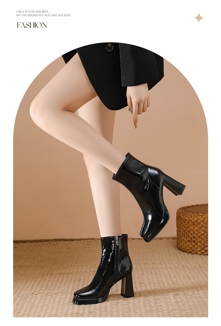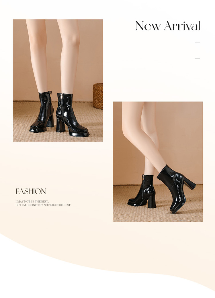 商品名称:2024秋冬新款加高防水台漆皮高跟短靴女切尔西酷飒粗跟瘦瘦靴 950874