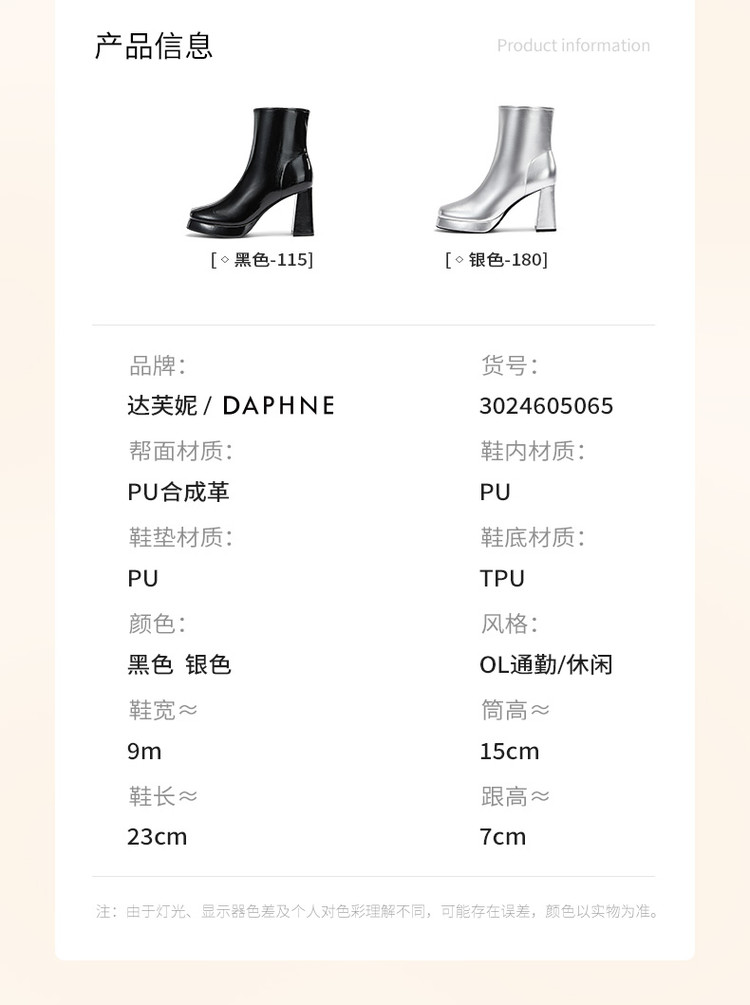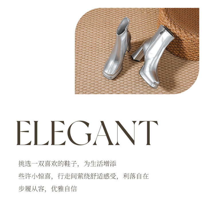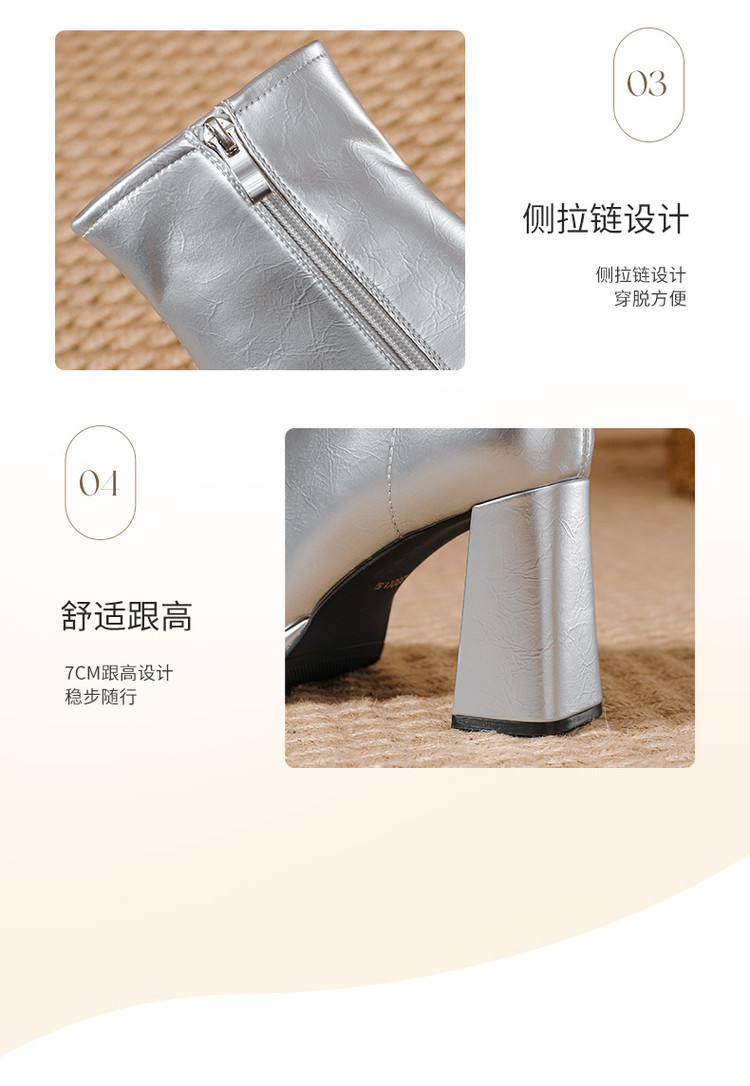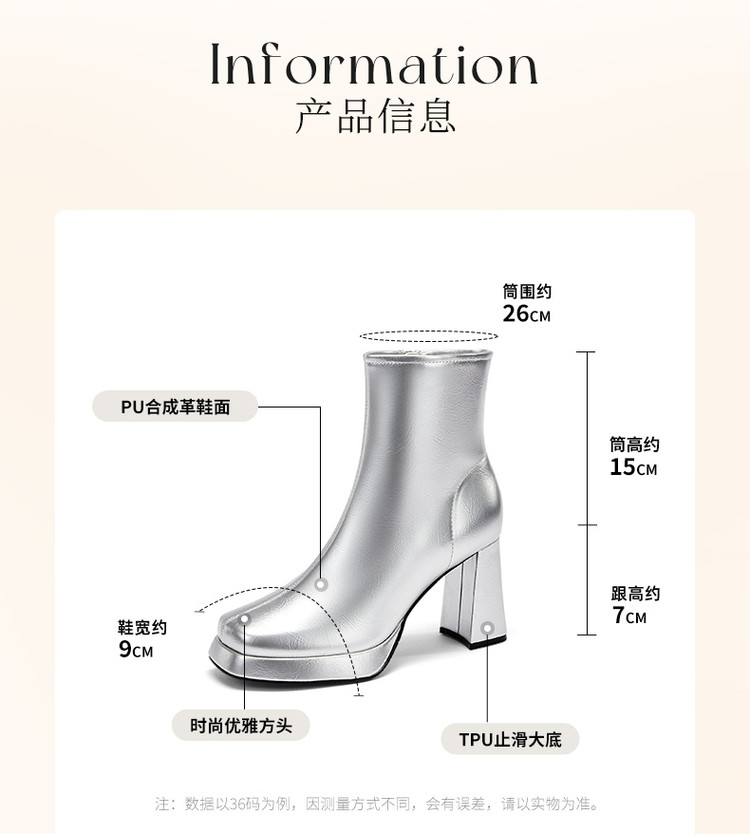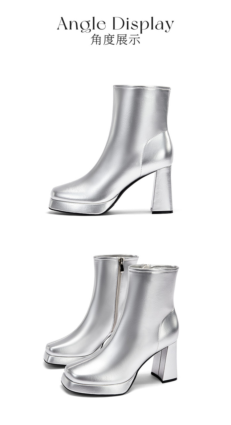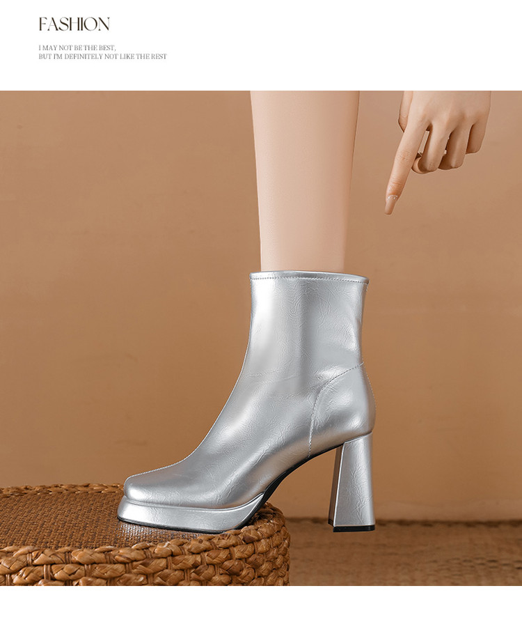 商品名称:2024秋冬新款加高防水台漆皮高跟短靴女切尔西酷飒粗跟瘦瘦靴 950874