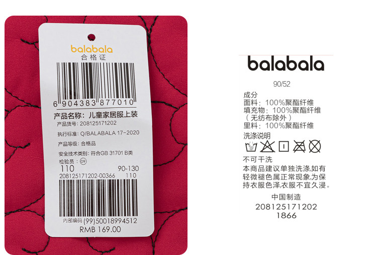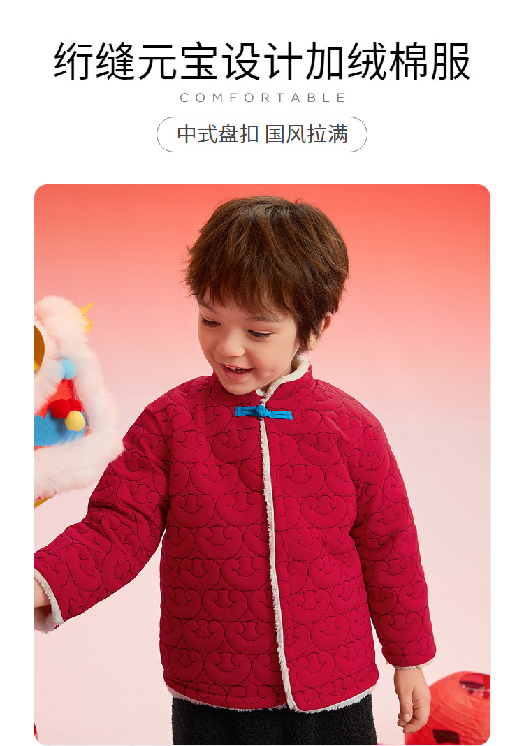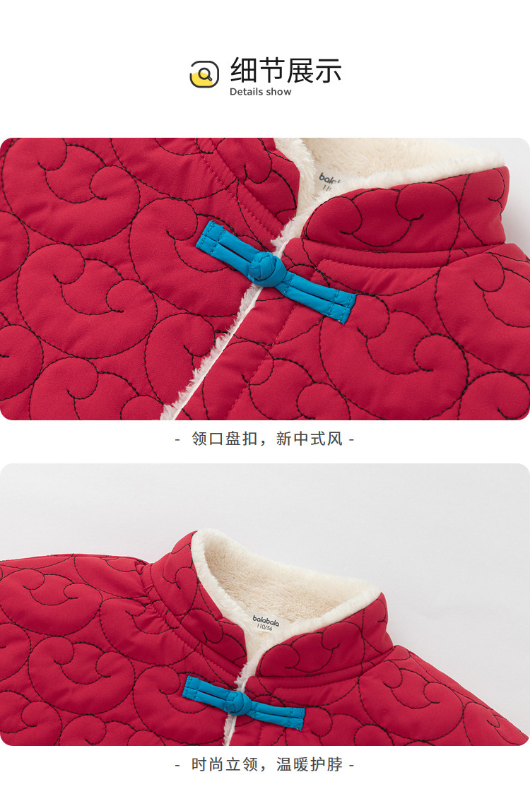 商品名称:儿童棉服2025春季保暖衣男童女童可外出红色长袖外套国风盘扣 802565