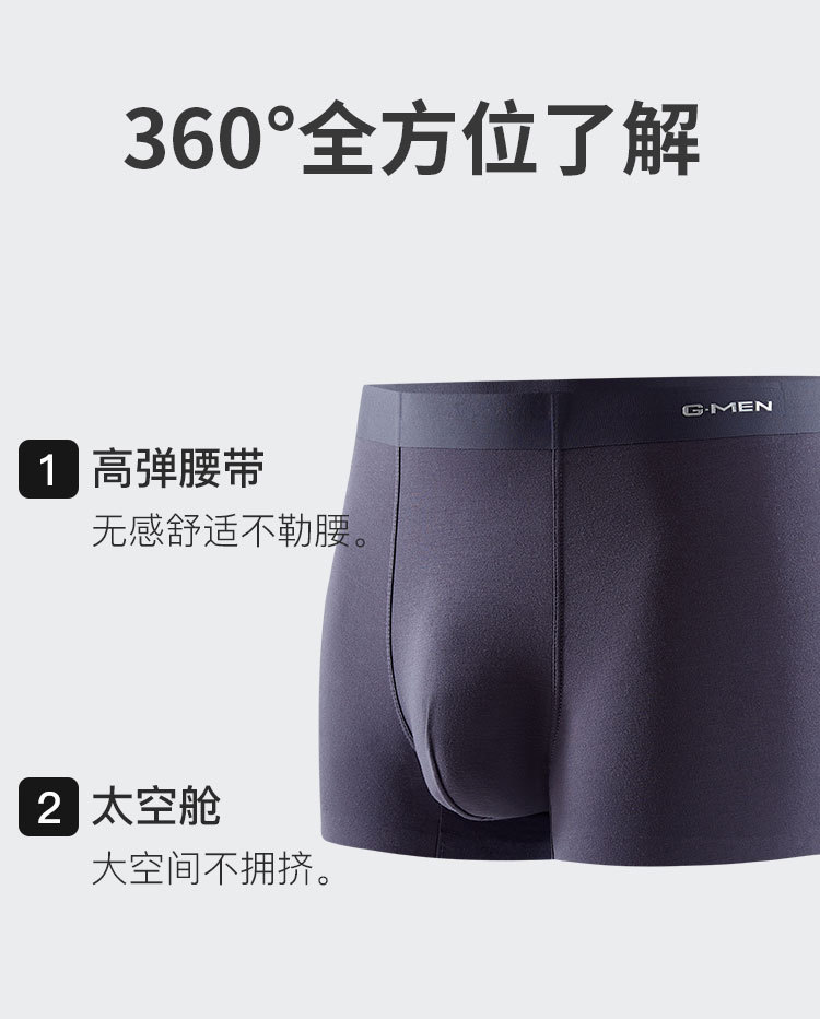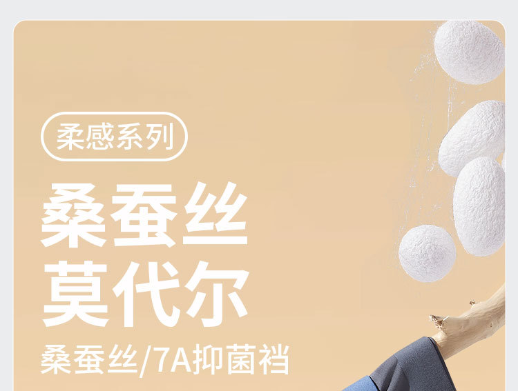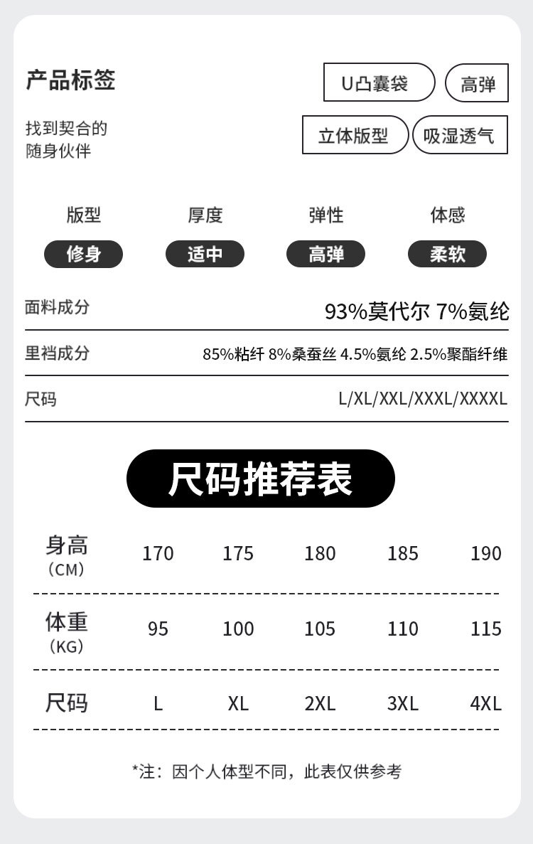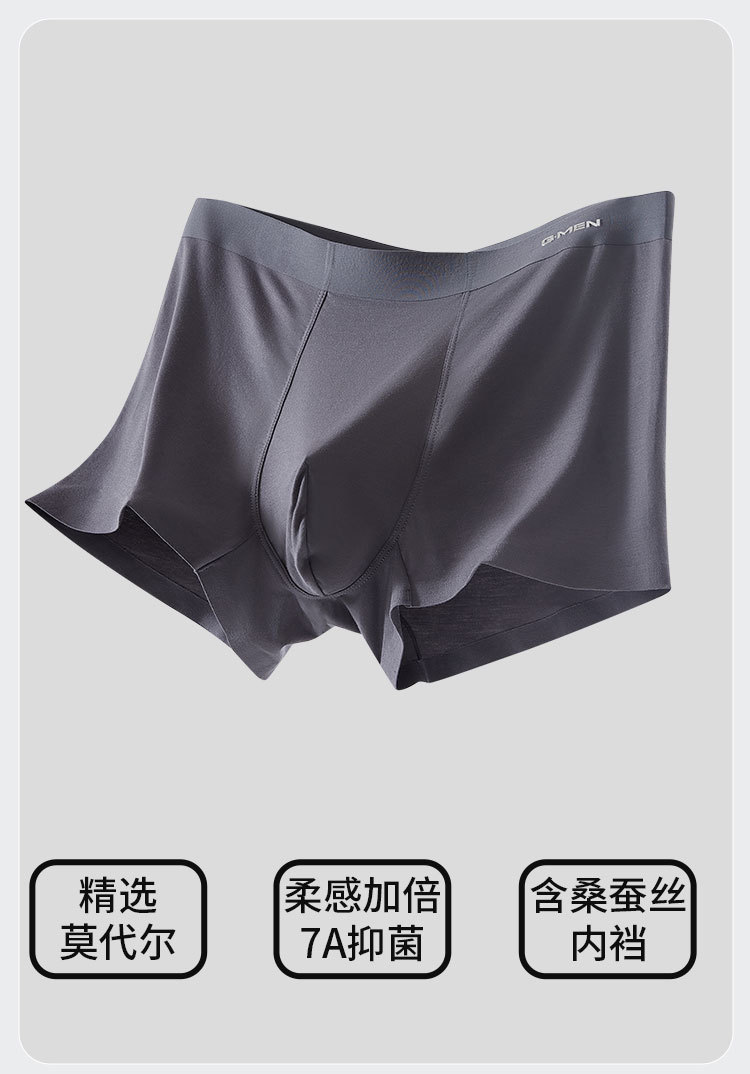 商品名称:莫代尔无痕运动透气抑菌四角含桑蚕丝底档短裤古今内裤男士平角 524363