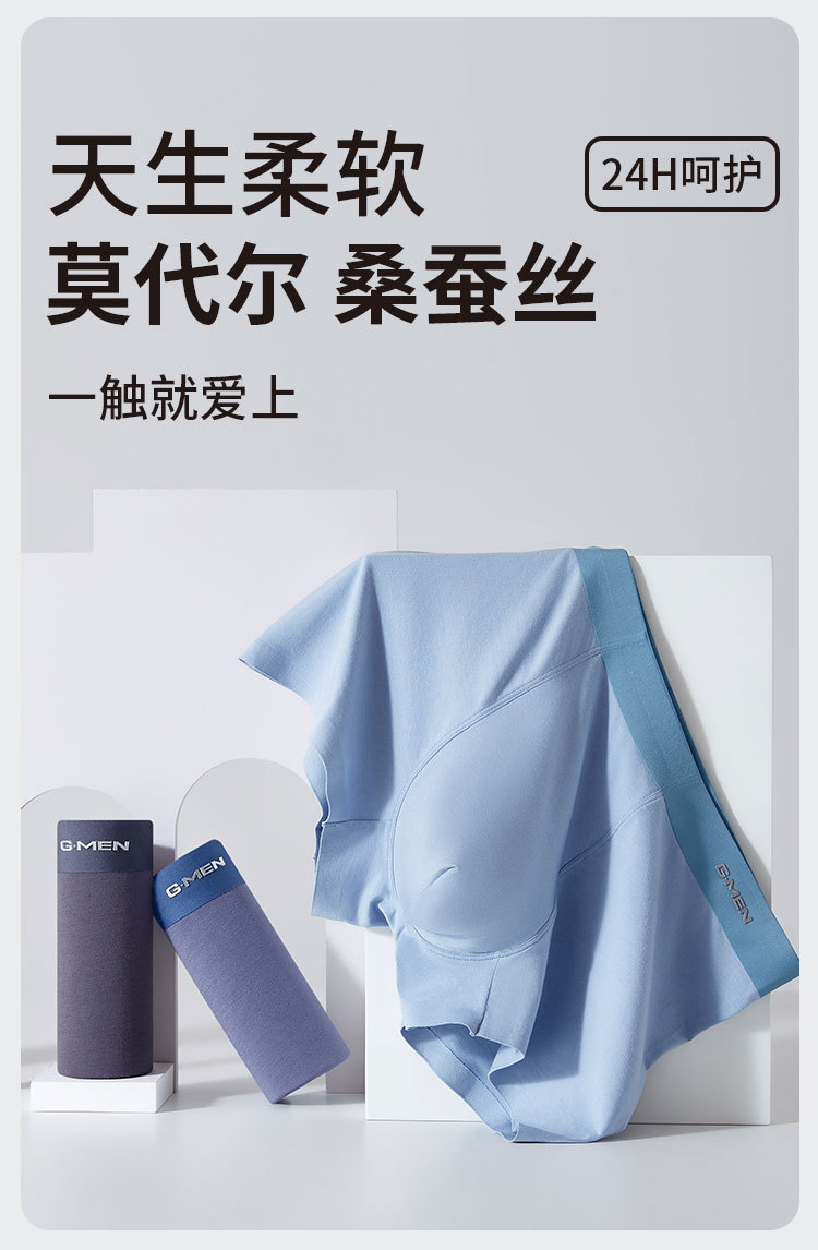 莫代尔无痕运动透气抑菌四角含桑蚕丝底档短裤古今内裤男士平角 524363