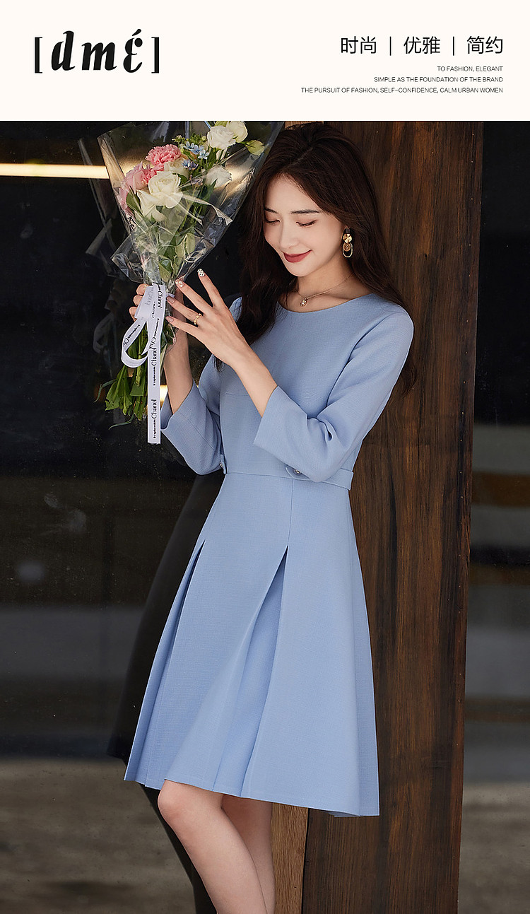 商品名称:【静奢通勤时刻】秋季知性小香风A字小黑裙九分袖连衣裙女中长款 809217