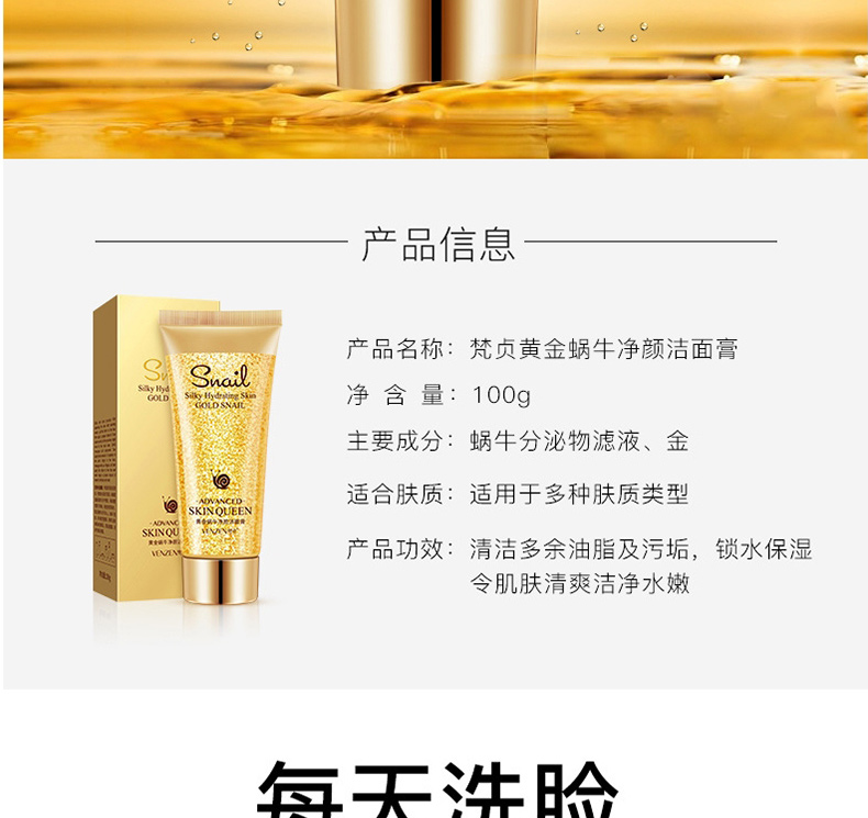 商品名称:梵贞 黄金蜗牛净颜洁面膏 100g 锁水保湿 温和清洁