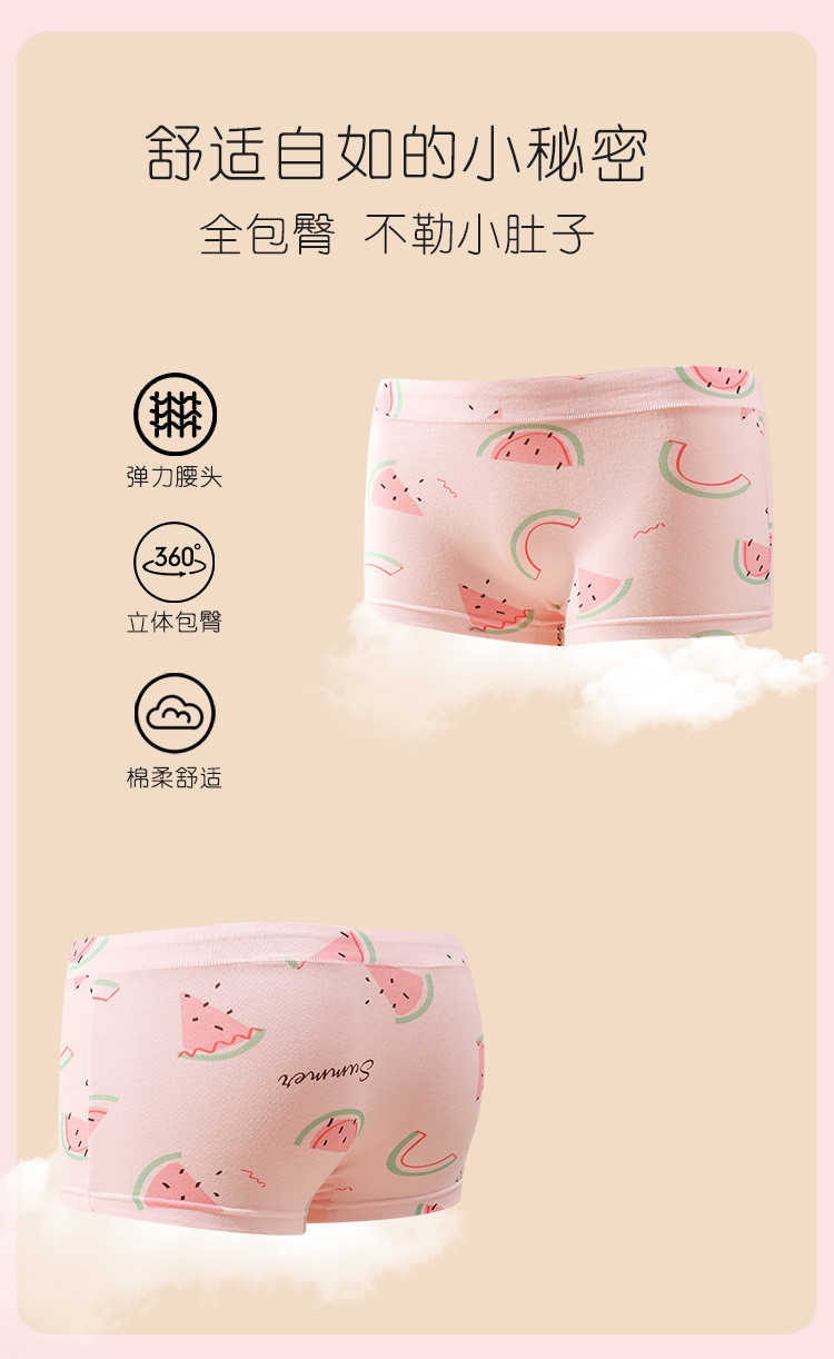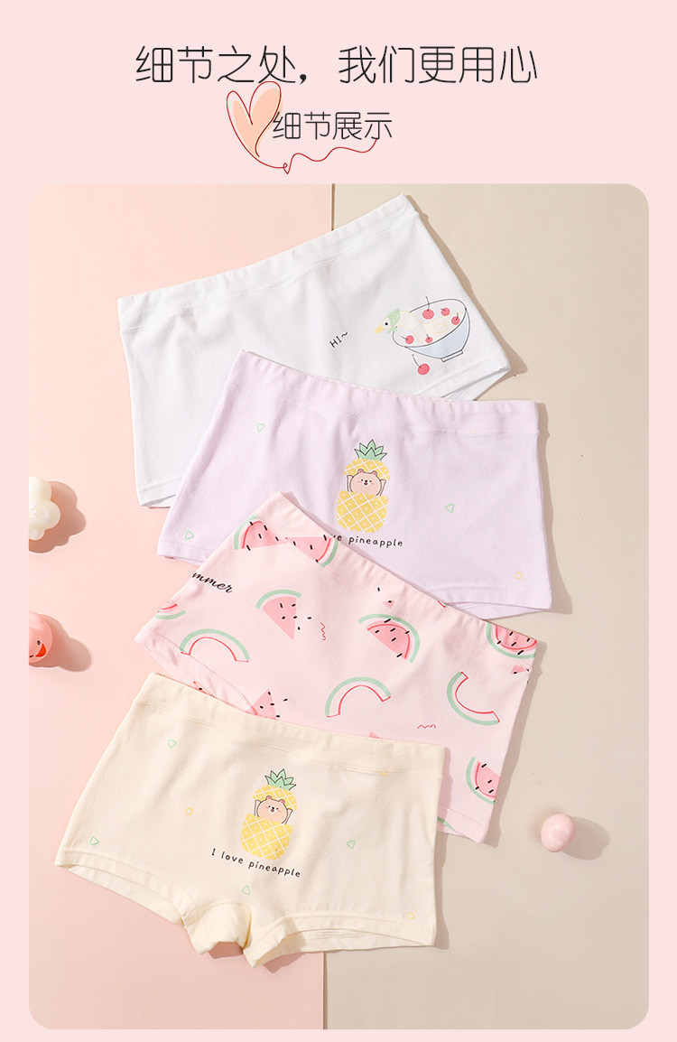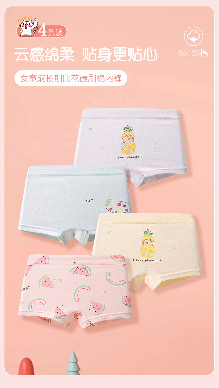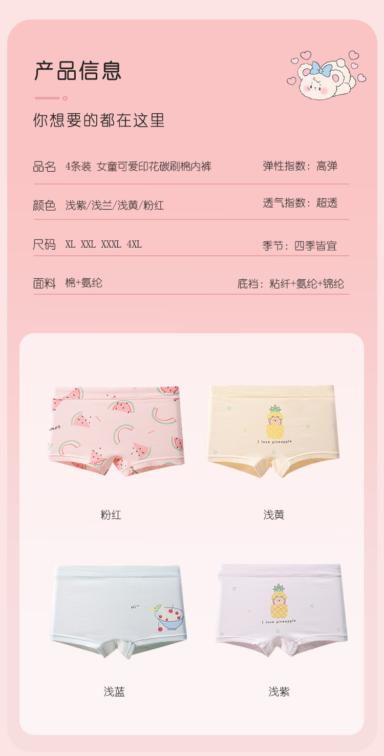 商品名称:【95%棉】弹力舒适4条装可爱印花不夹pp透气四角裤女童内裤 067230