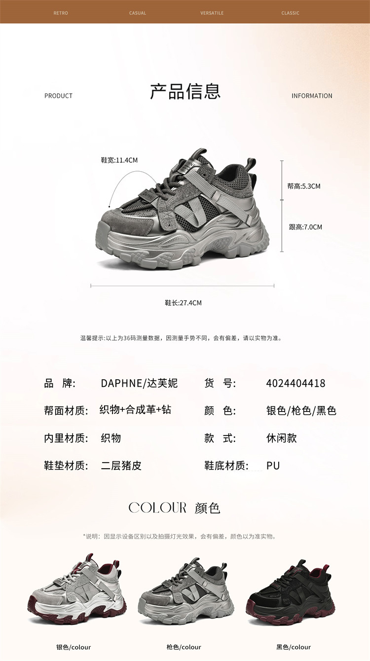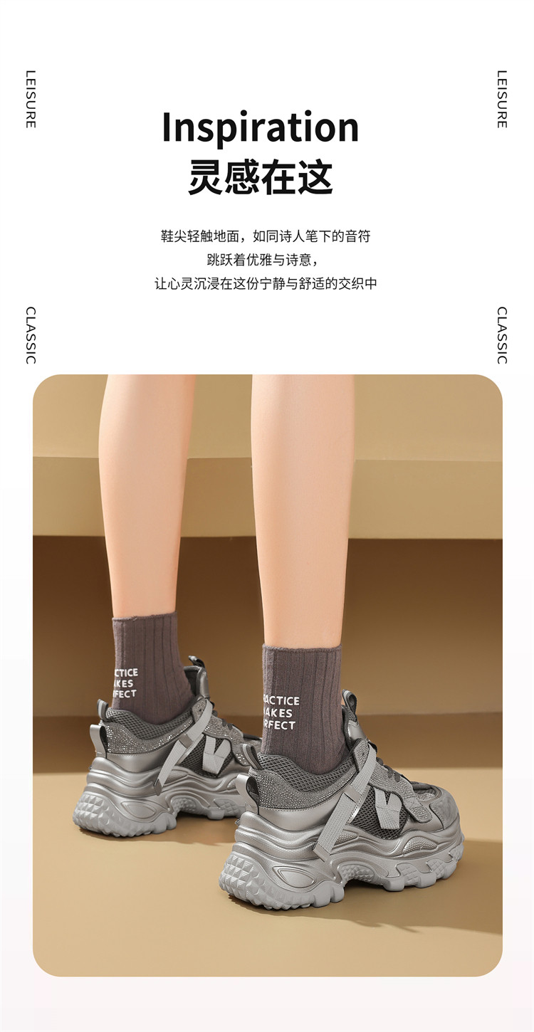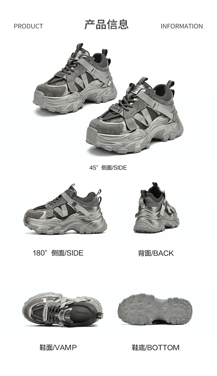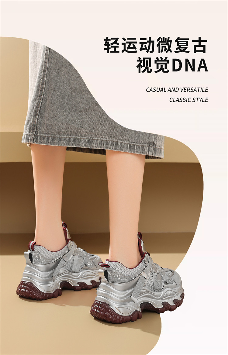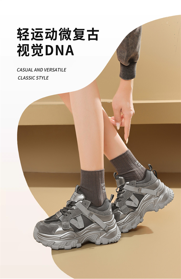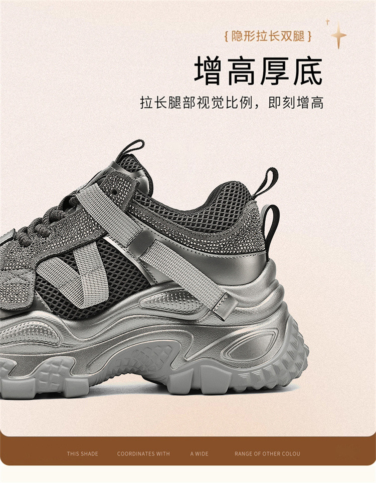 商品名称:2025夏季时尚老爹鞋女轻便运动休闲鞋厚底鞋百搭显脚小网面鞋 652567