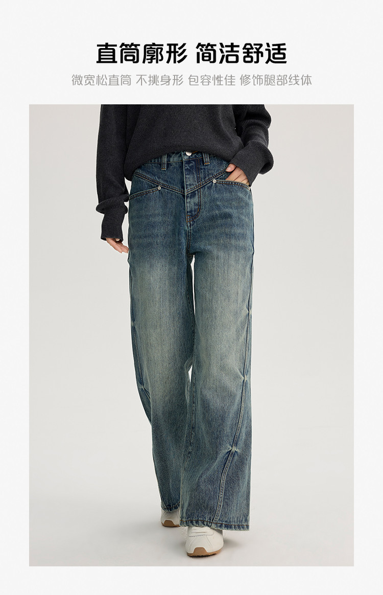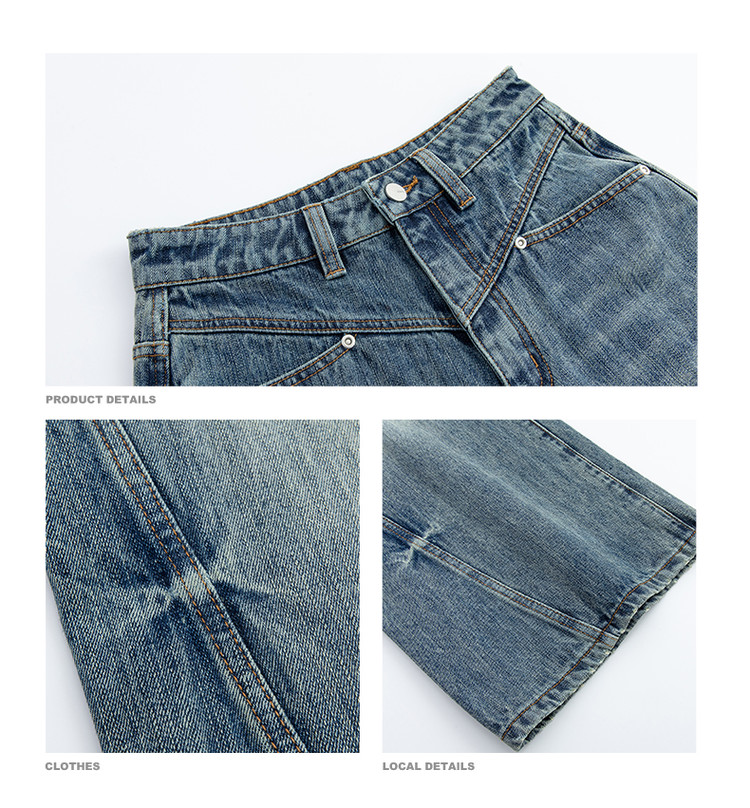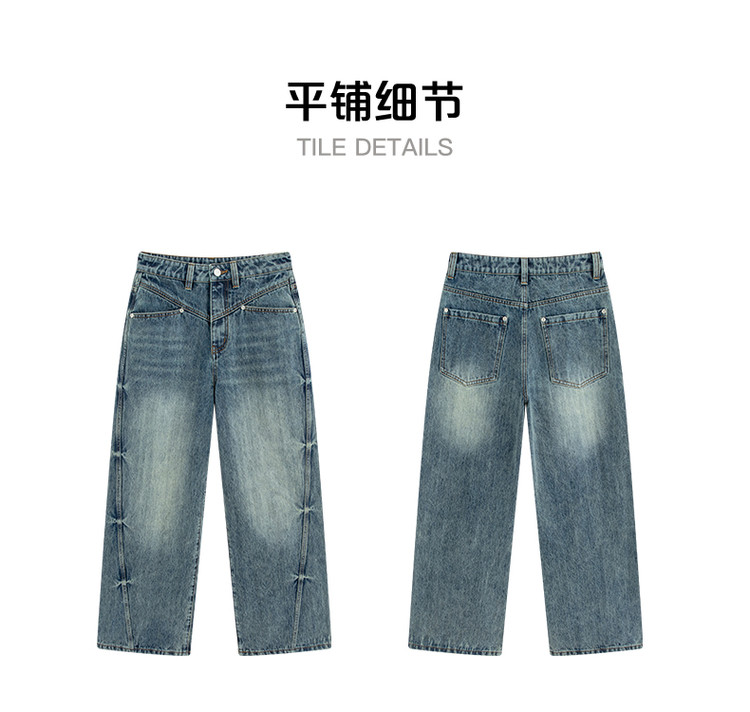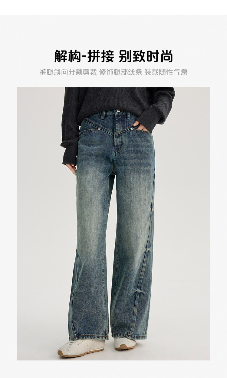 商品名称:2024款时尚做旧水洗牛仔裤女式高腰显瘦直筒裤解构长裤女 736854