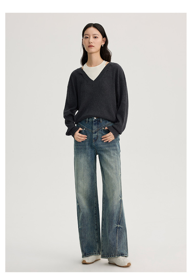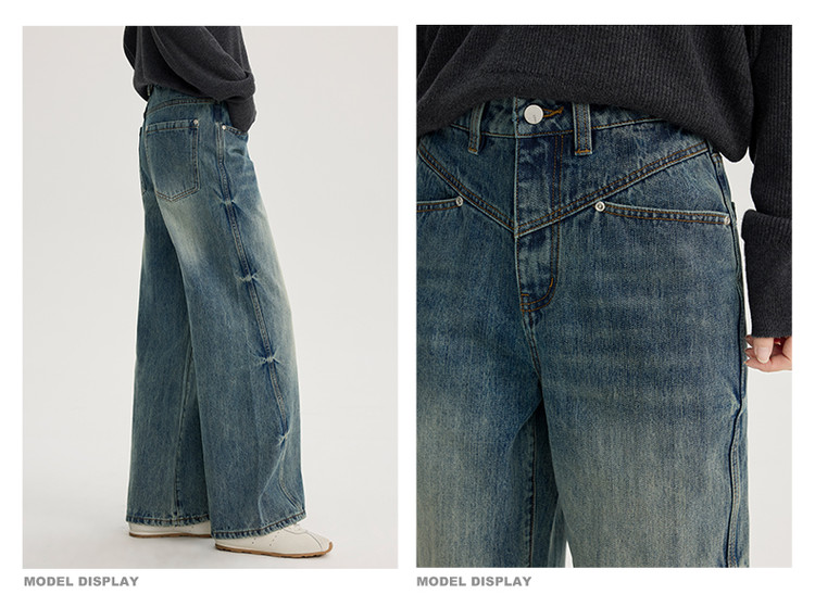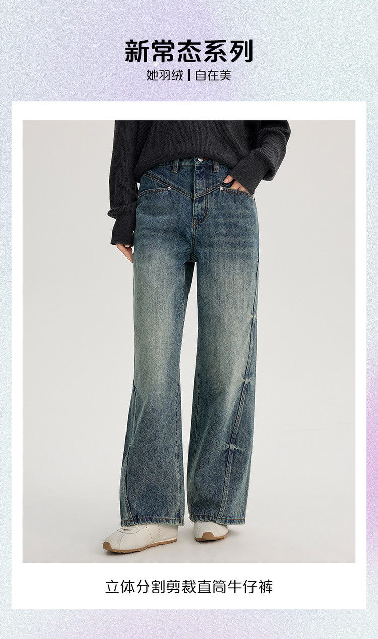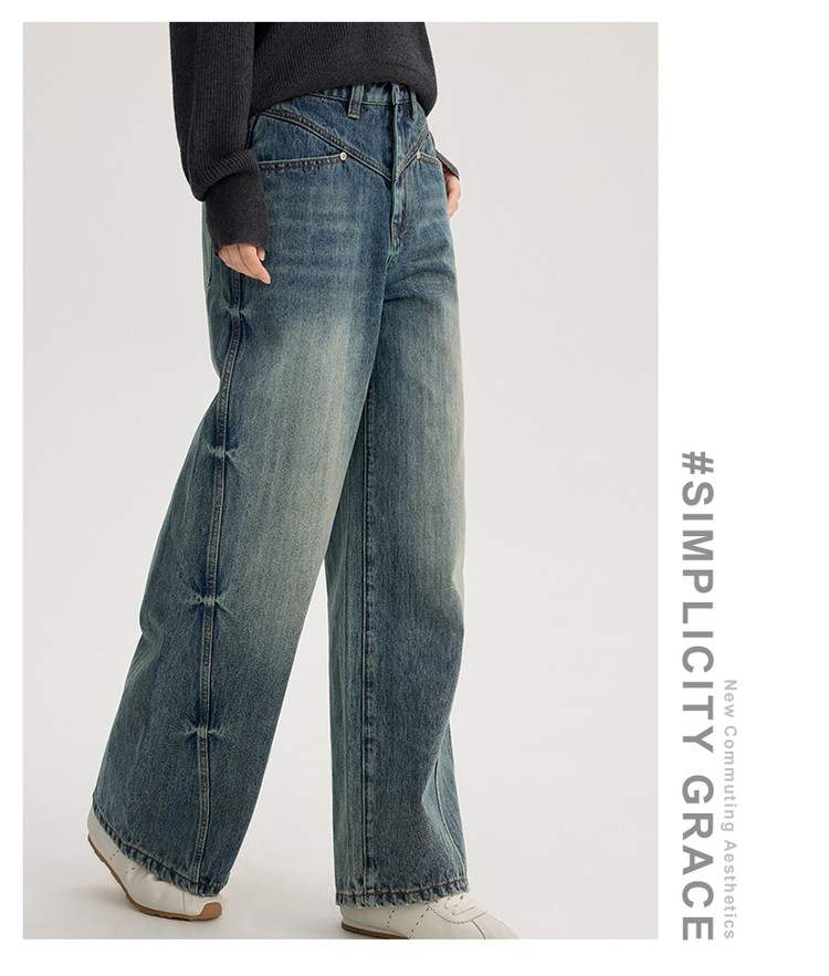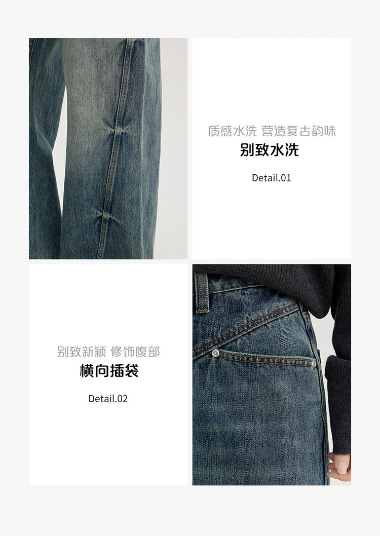 商品名称:2024款时尚做旧水洗牛仔裤女式高腰显瘦直筒裤解构长裤女 736854