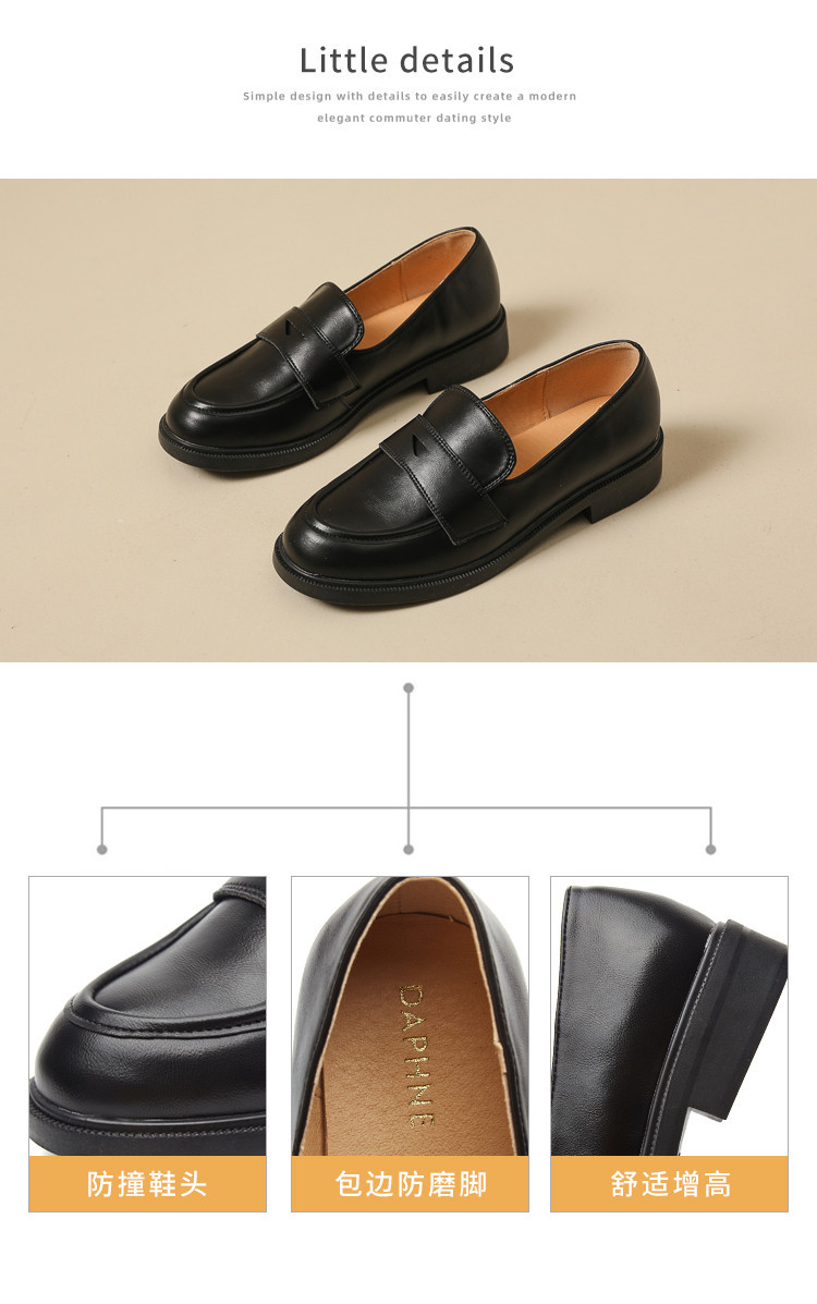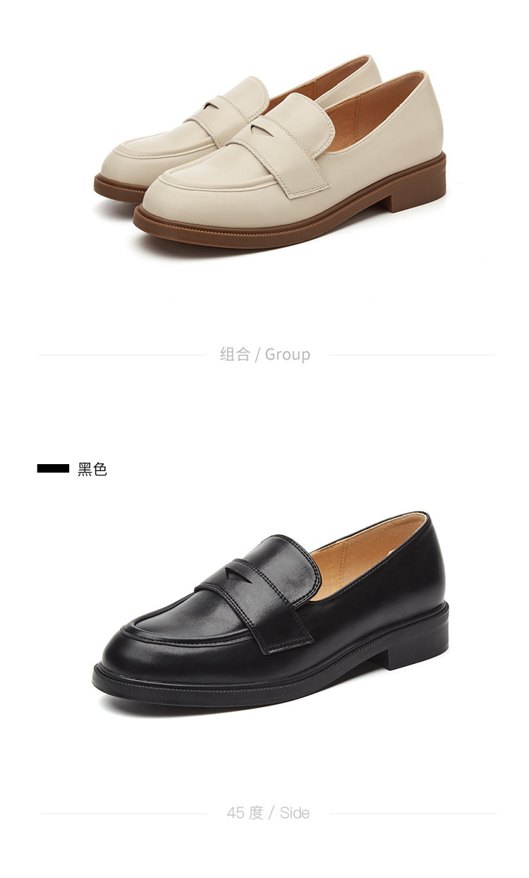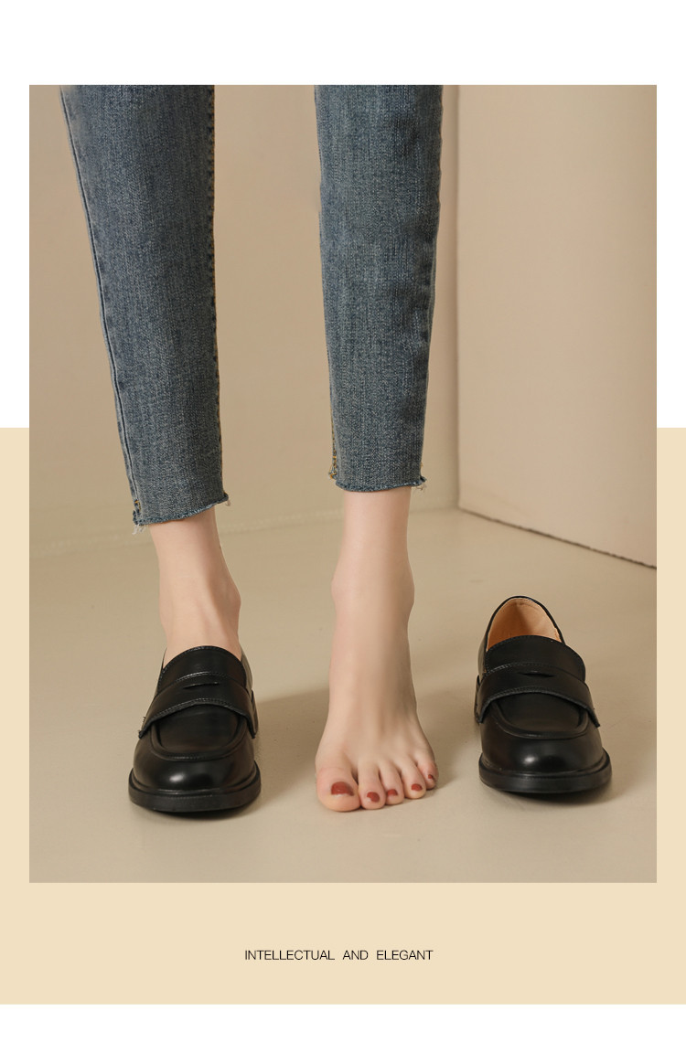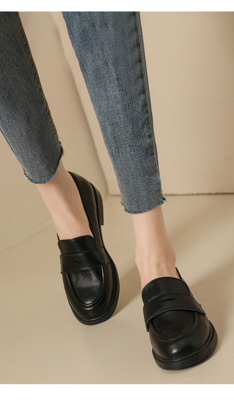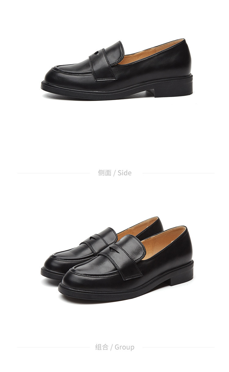 商品名称:英伦风小皮鞋女春秋款圆头通勤百搭一脚蹬单鞋粗跟乐福鞋子女 841751
