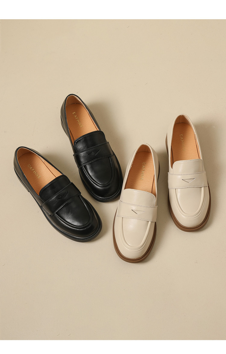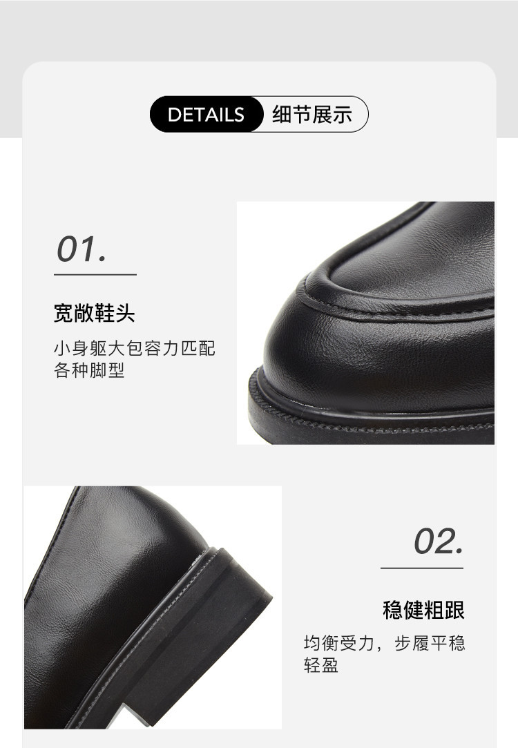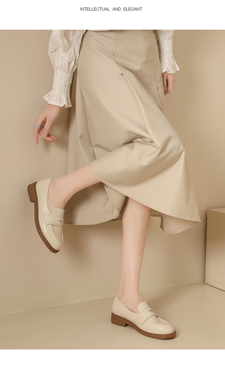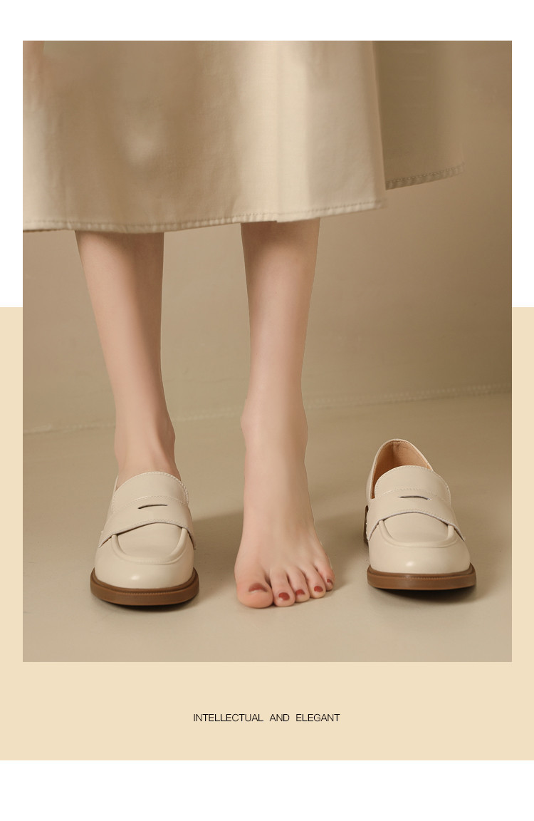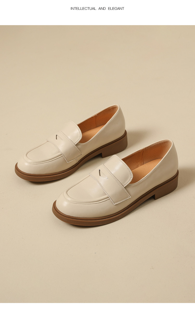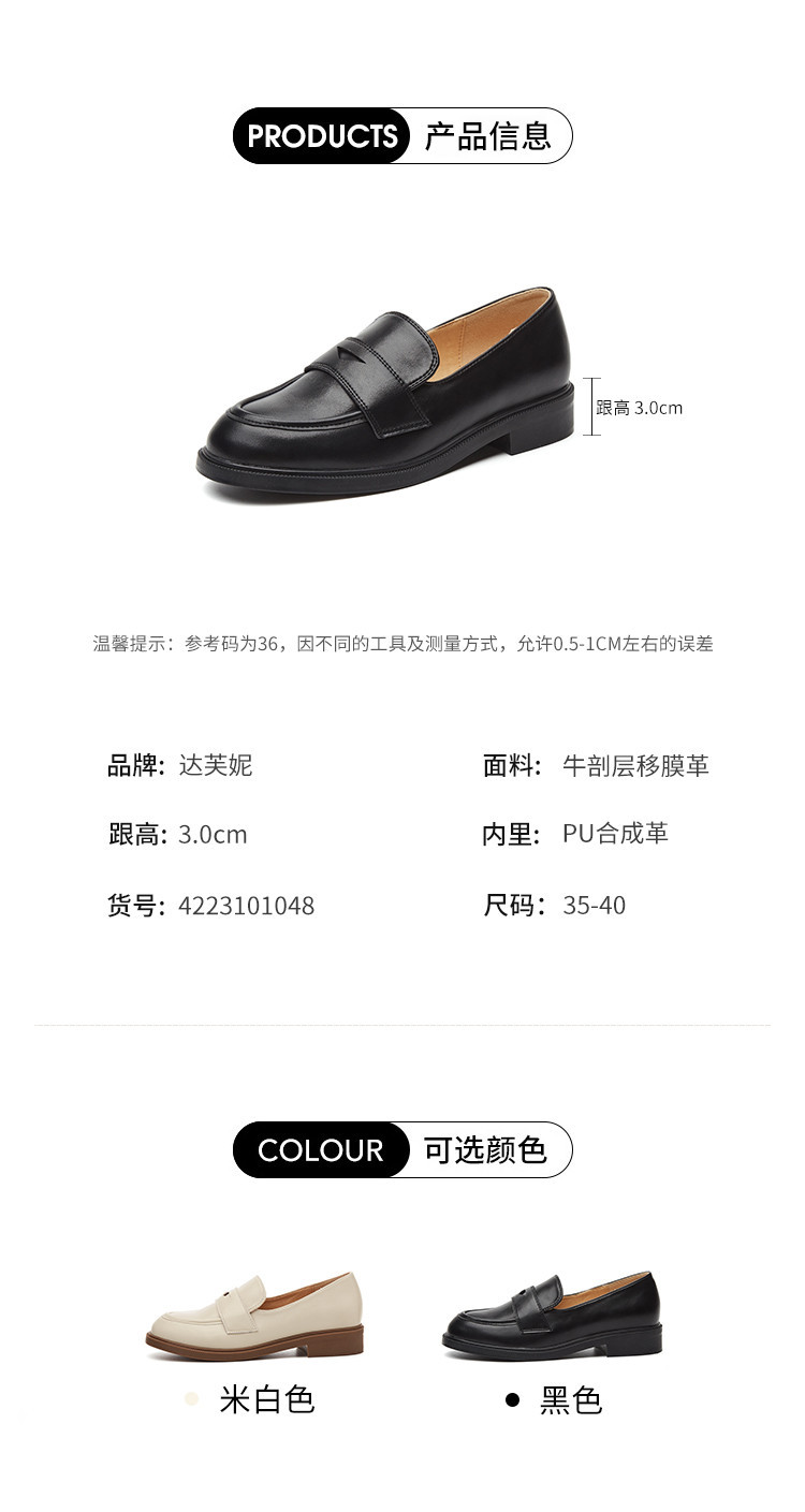 商品名称:英伦风小皮鞋女春秋款圆头通勤百搭一脚蹬单鞋粗跟乐福鞋子女 841751