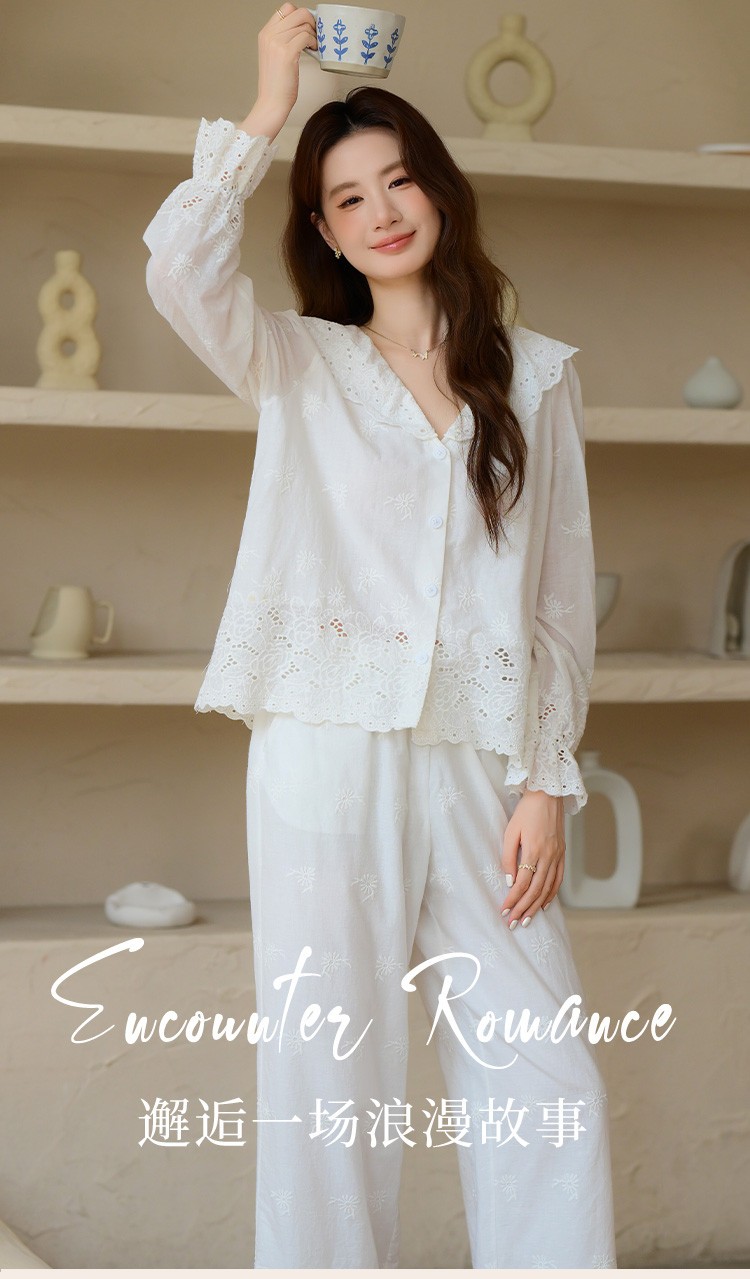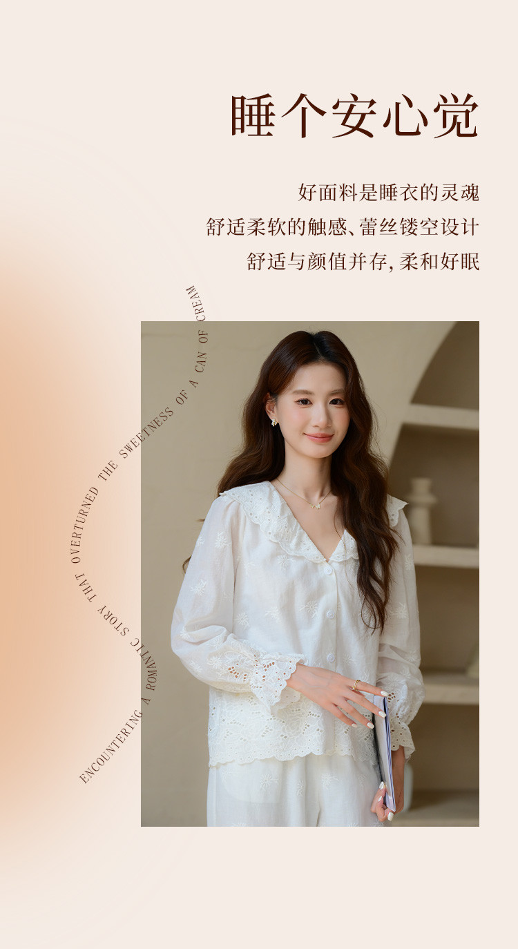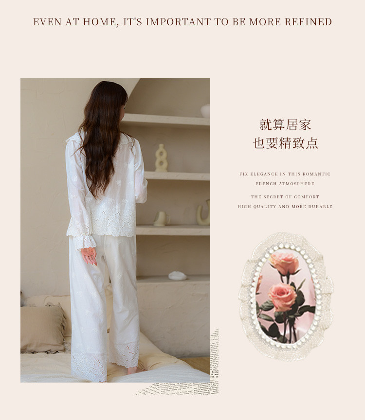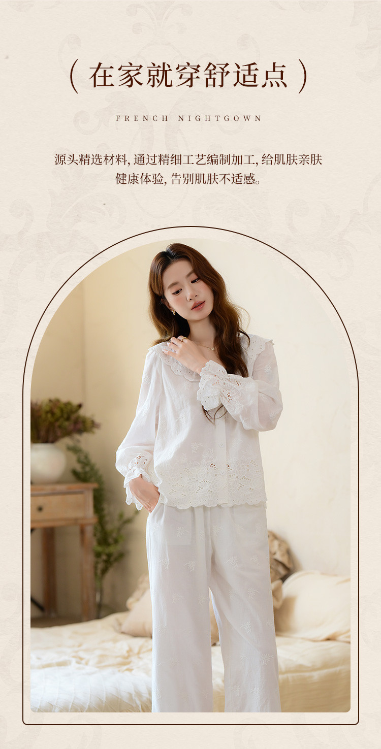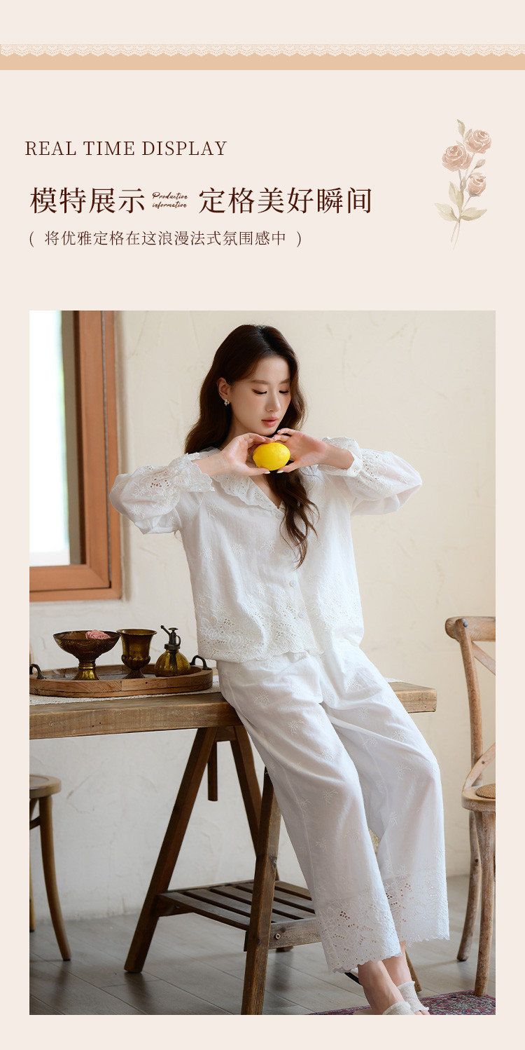 商品名称:【镂空花朵】法式长袖长裤睡衣女春款可外穿高级感纯棉家居服套装 355339
