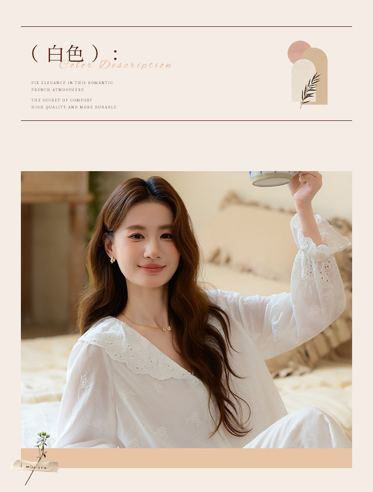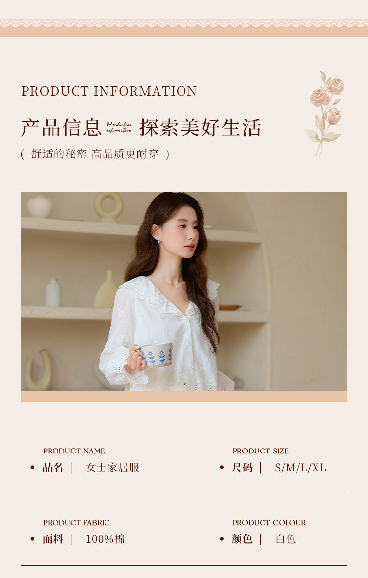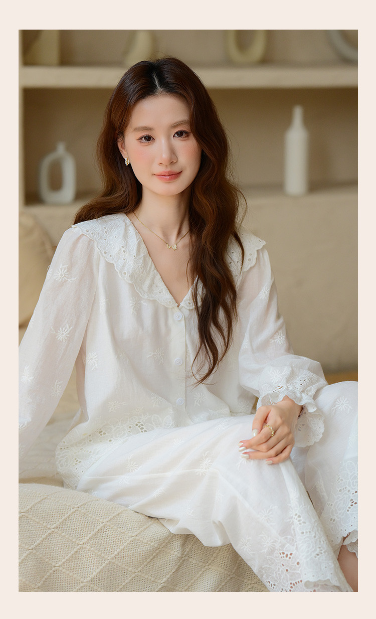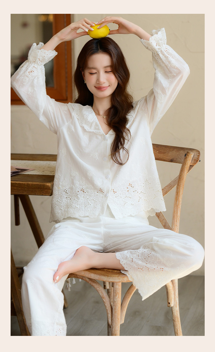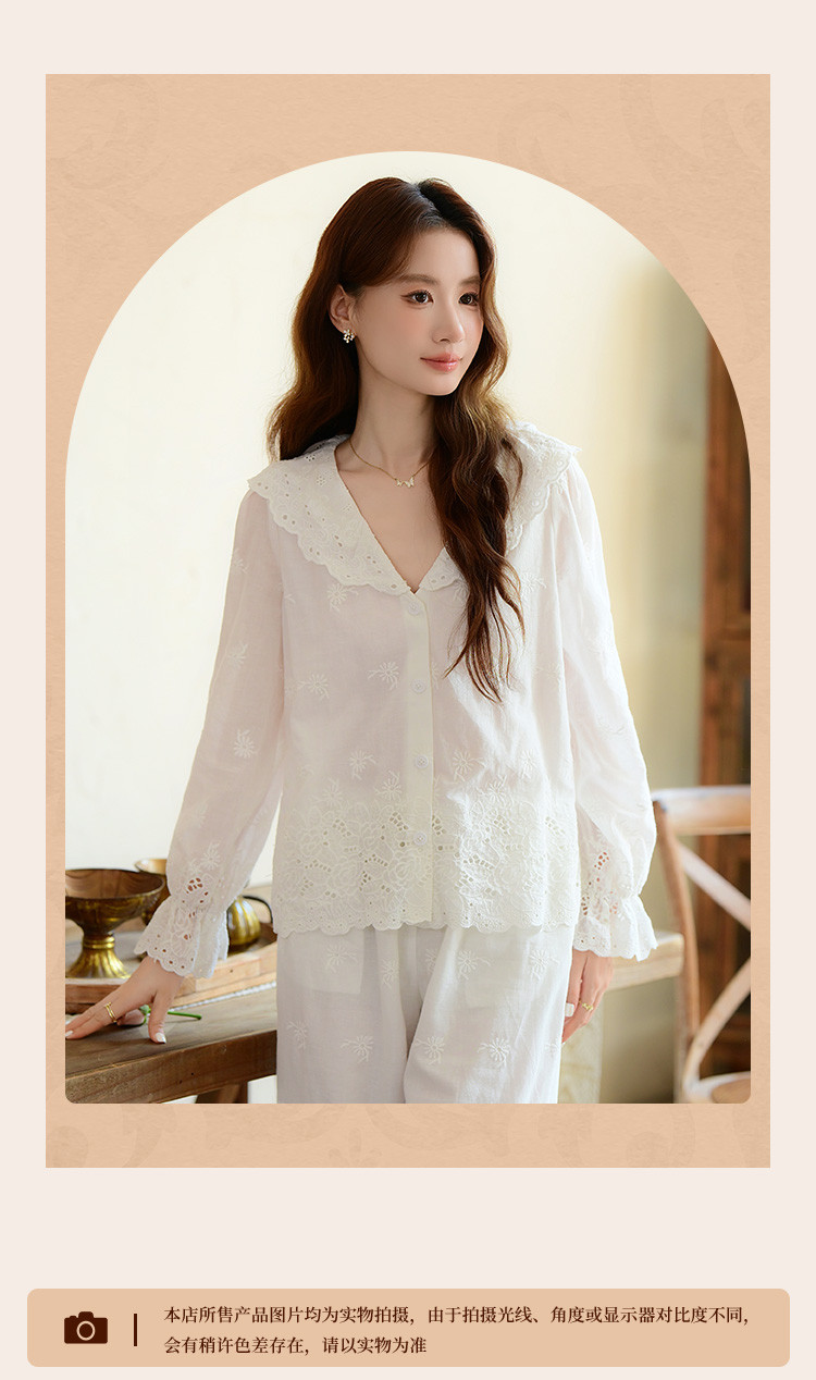 商品名称:【镂空花朵】法式长袖长裤睡衣女春款可外穿高级感纯棉家居服套装 355339