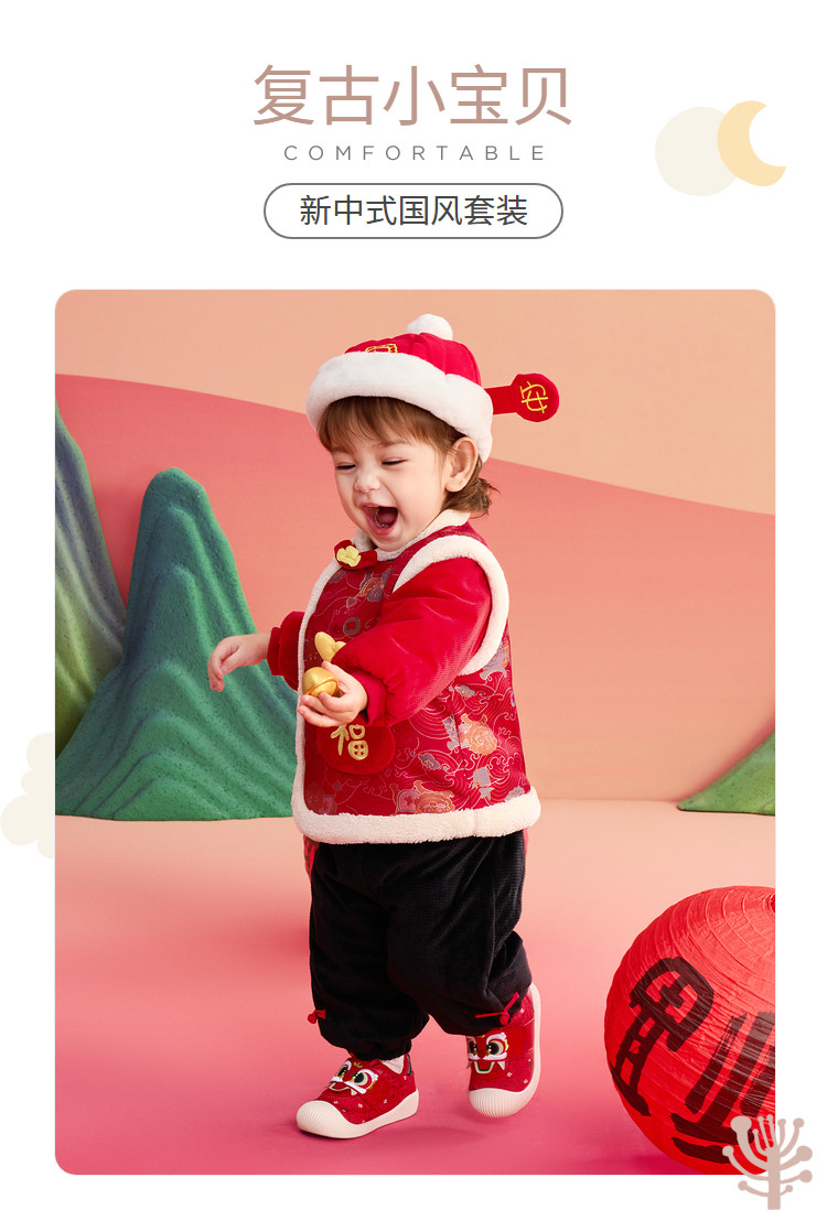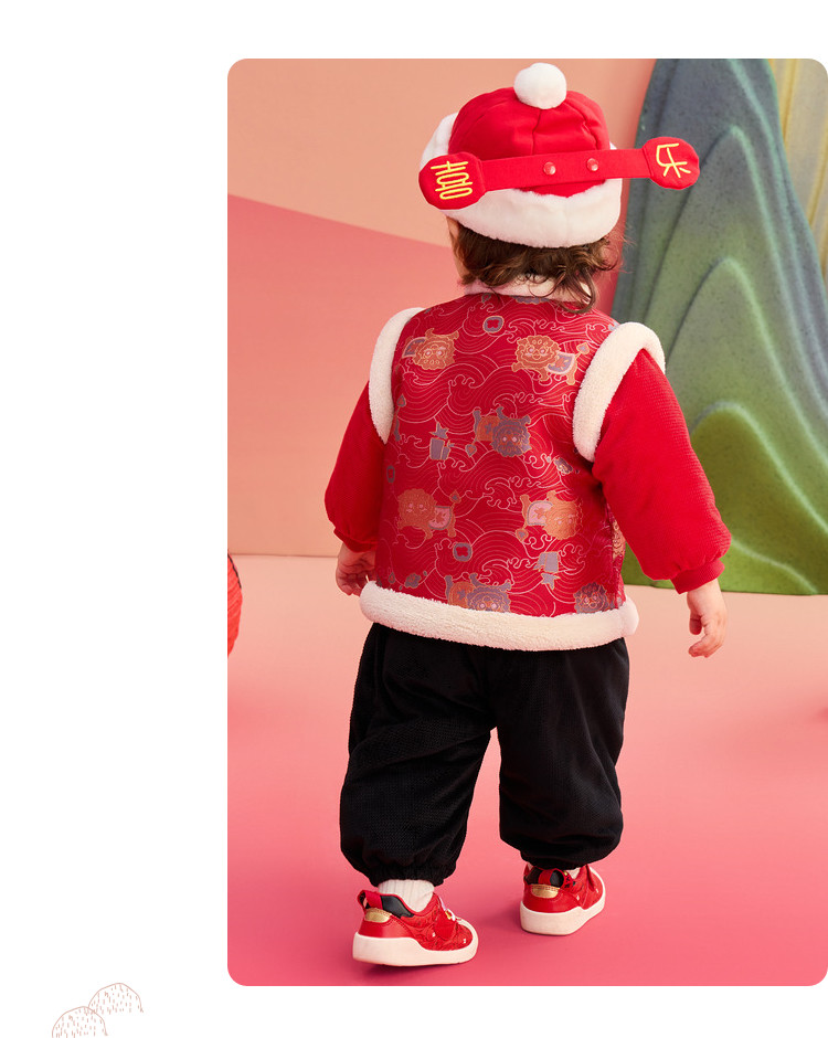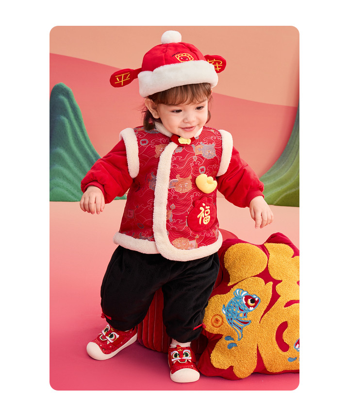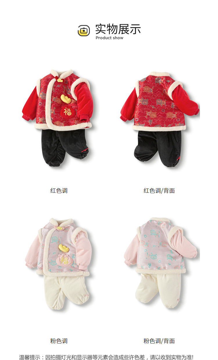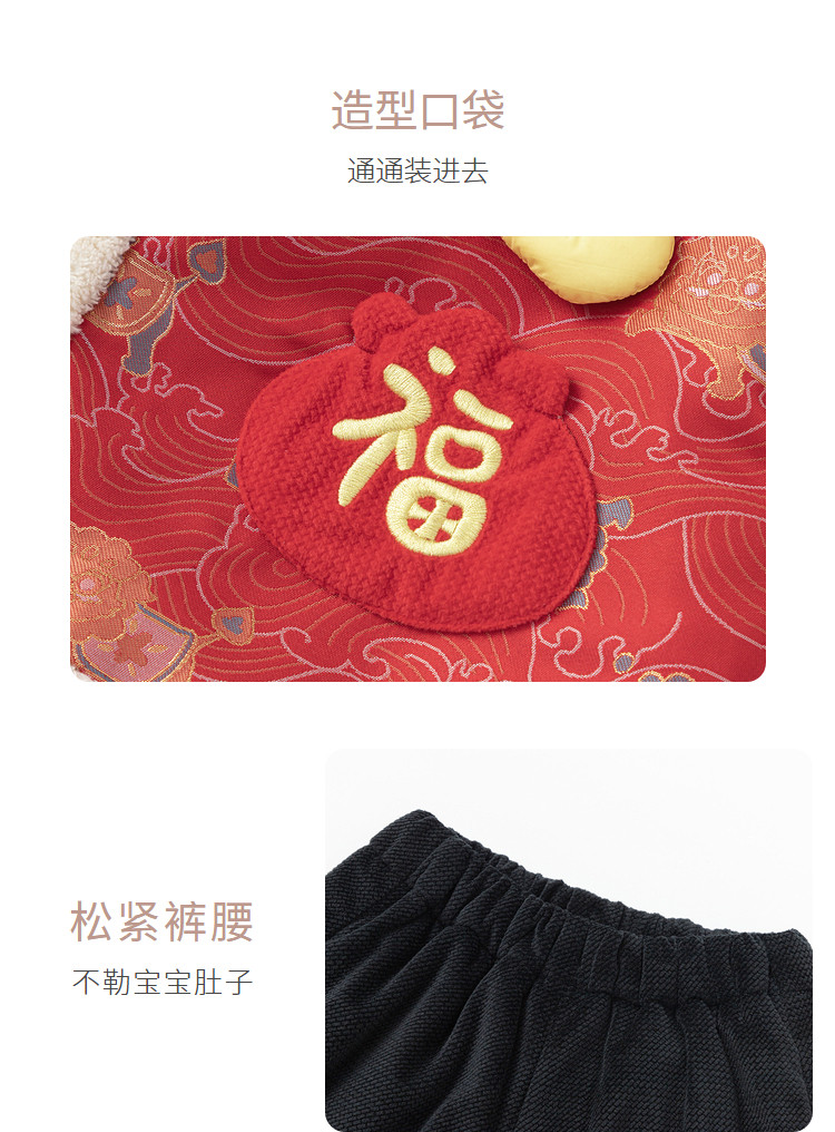商品名称:国风服婴幼棉服套装儿童外套男童女童春宝宝加绒萌春装 904901