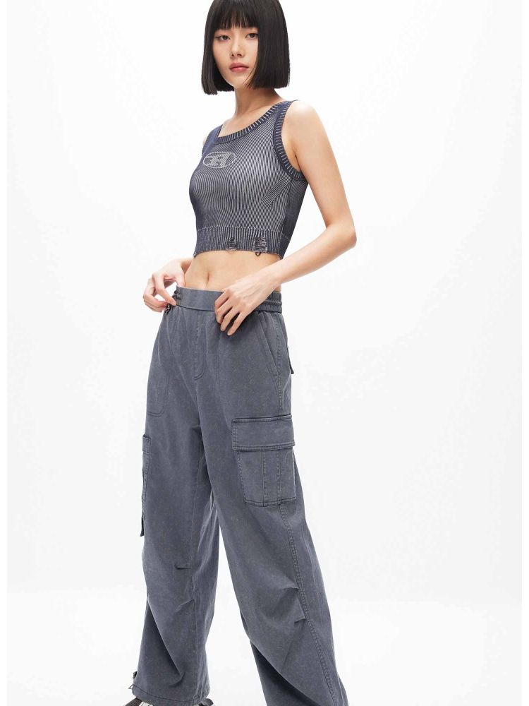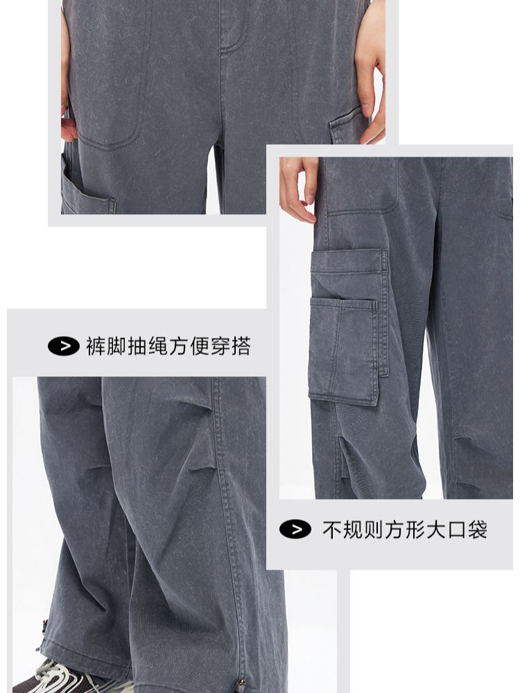 商品名称:【美式复古|大口袋设计】24冬季工装做旧宽松阔腿裤休闲裤女 318106