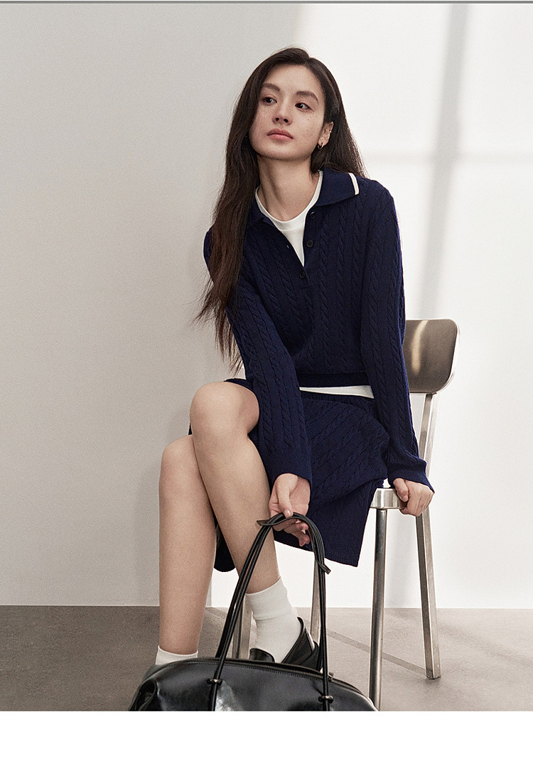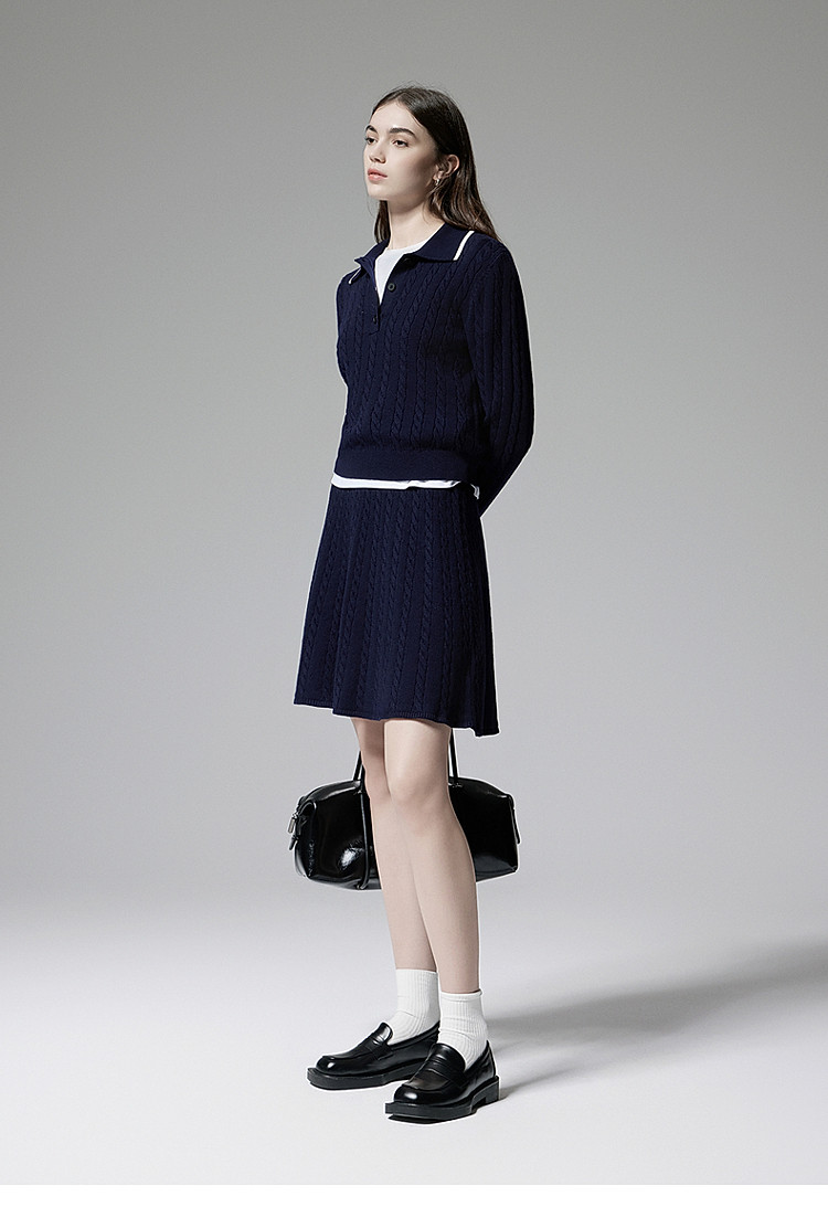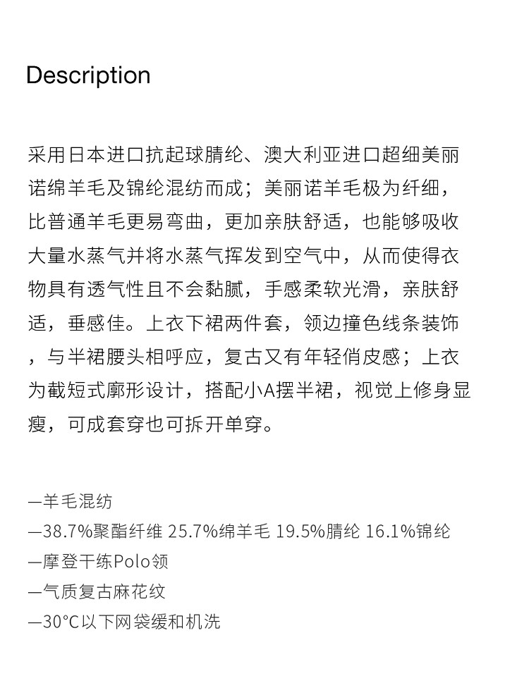 商品名称:春装 学院风高级感羊毛毛织半裙两件套女 040783