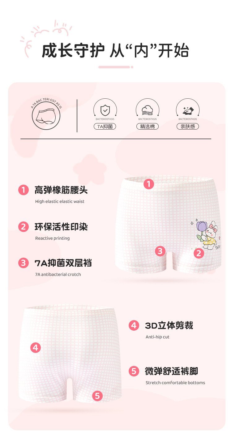 商品名称:【100%纯棉裆】女童内裤6条装儿童内裤女宝宝抑菌短裤平角裤 063499