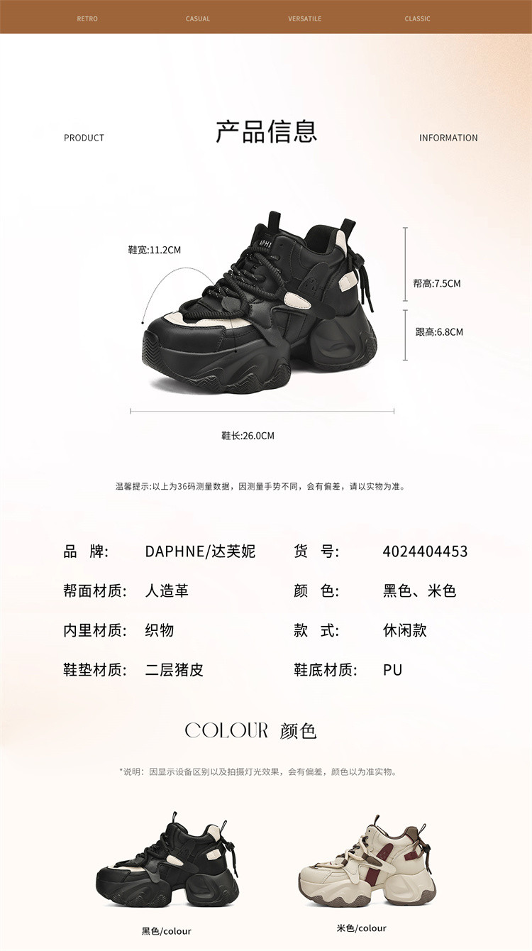 商品名称:老爹鞋女2025春夏百搭运动休闲鞋厚底增高鞋轻便显脚小通勤鞋 146263