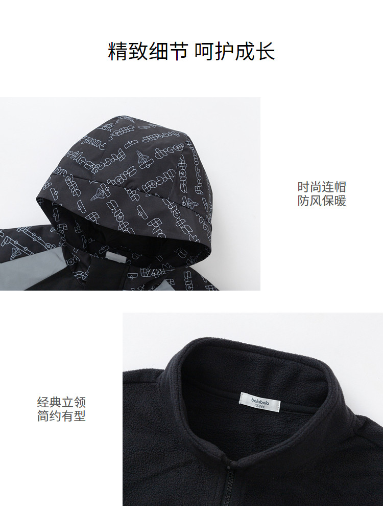 商品名称:巴拉巴拉男童外套童装中大童连帽防风儿童春装摇粒绒上衣两件套潮 270341