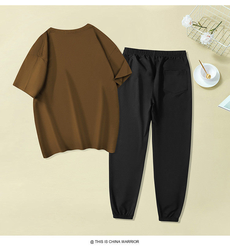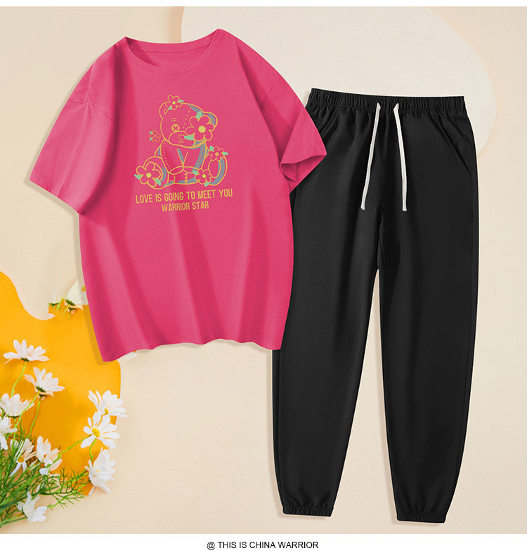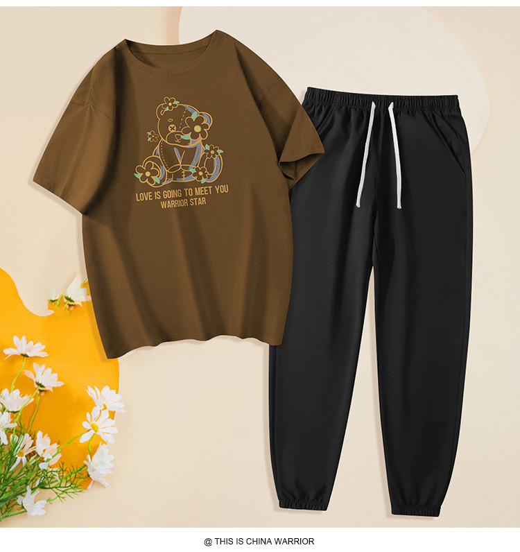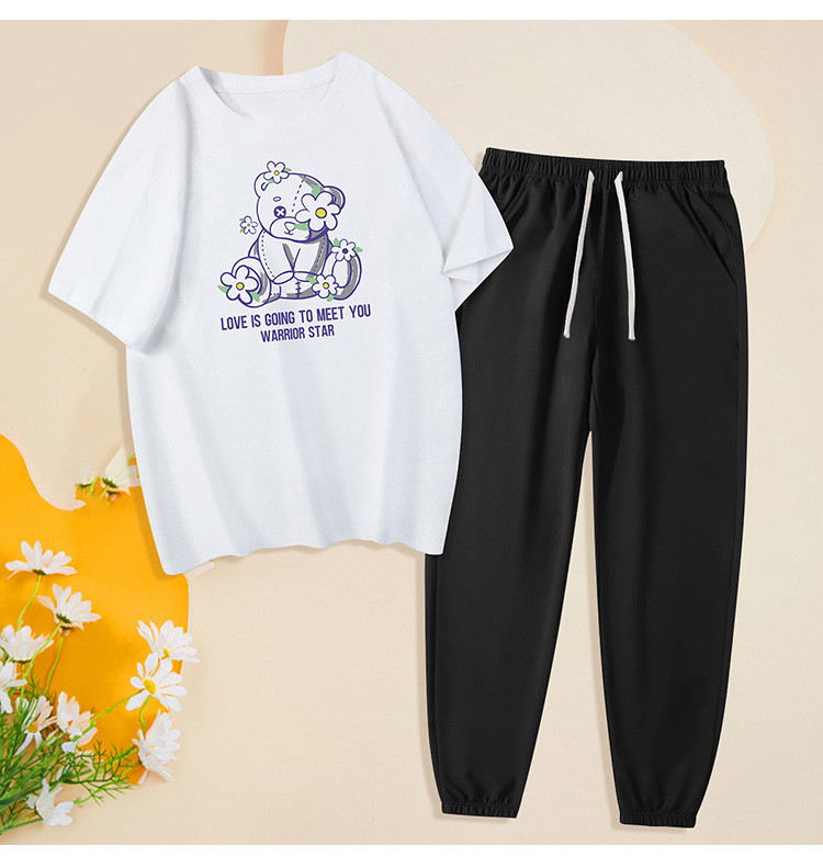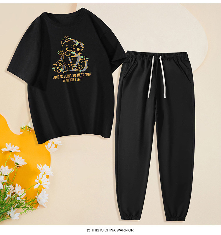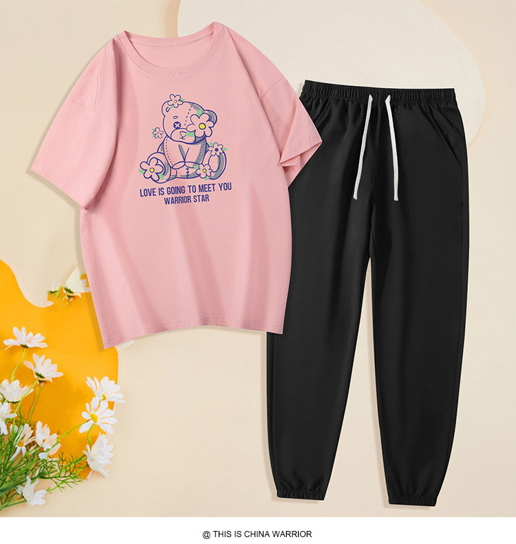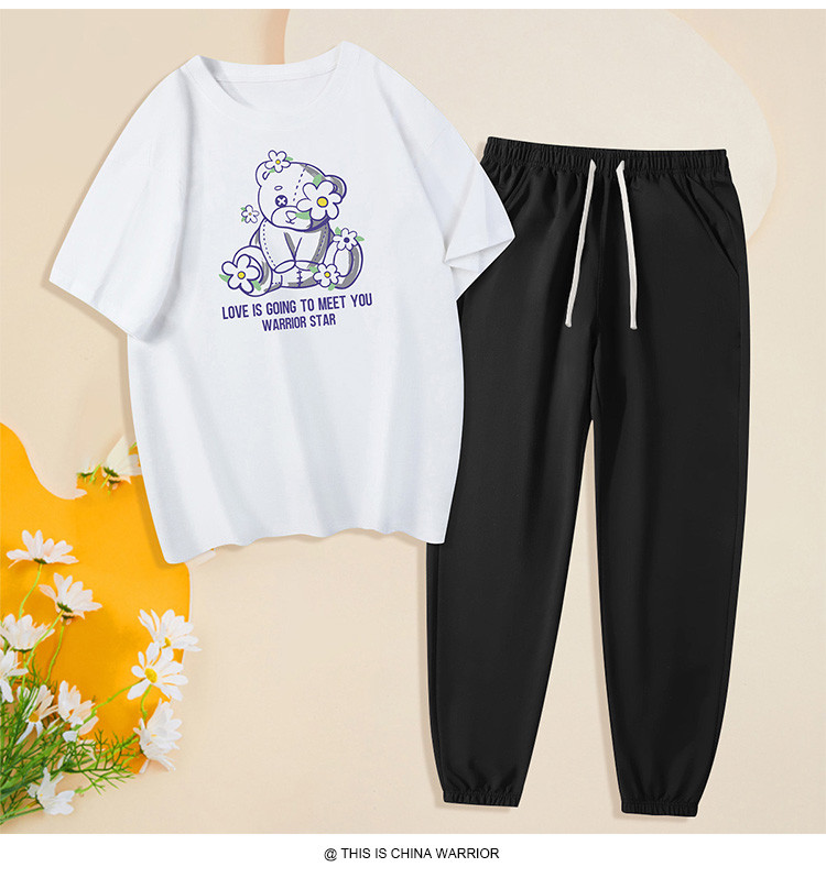 【两件套装】夏季运动套装女时尚纯棉圆领T恤两件套束脚裤女 797907