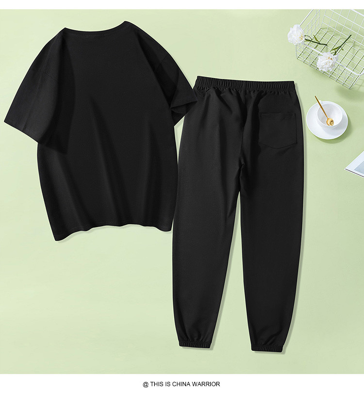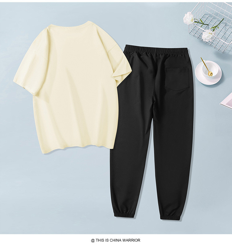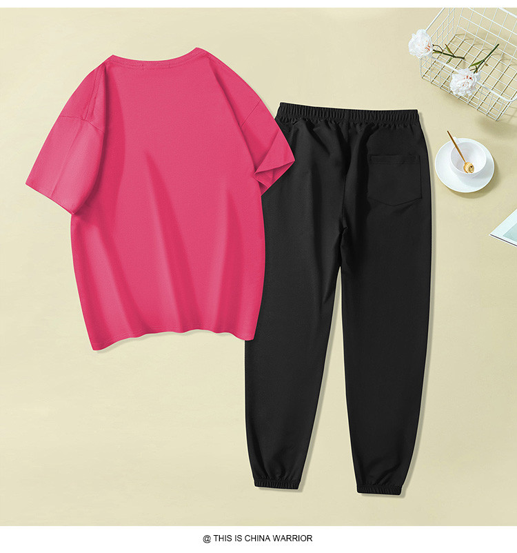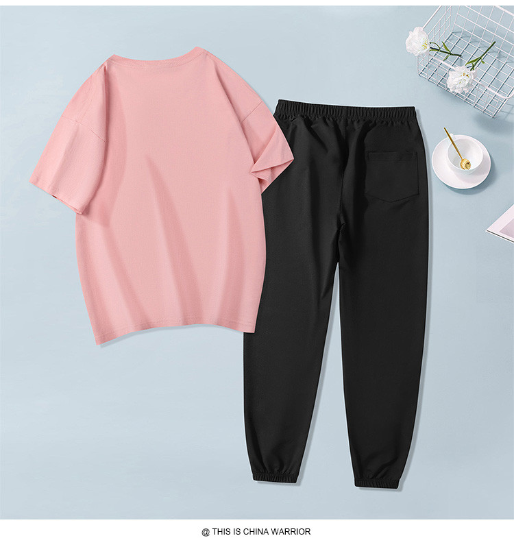 商品名称:【两件套装】夏季运动套装女时尚纯棉圆领T恤两件套束脚裤女 797907