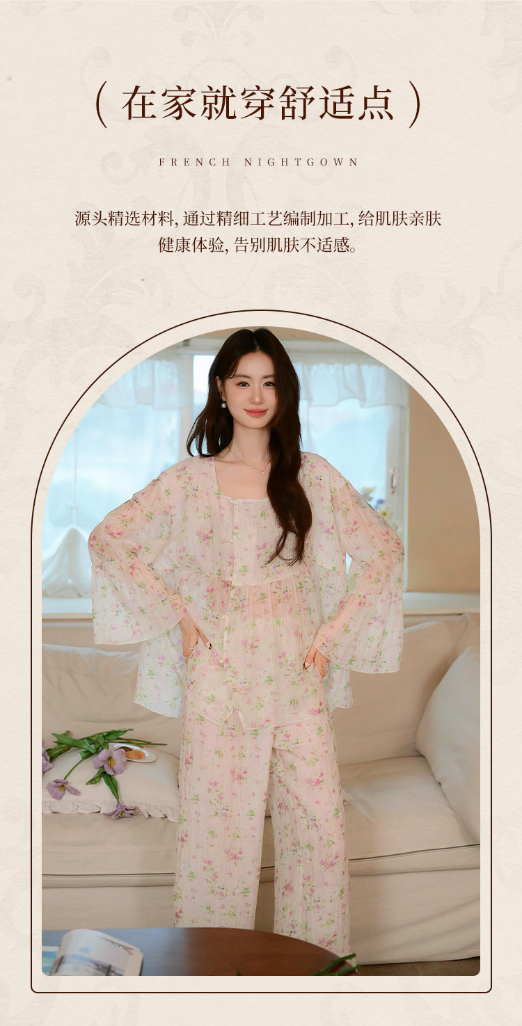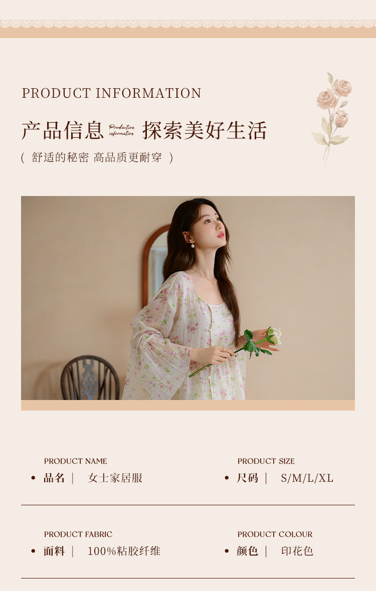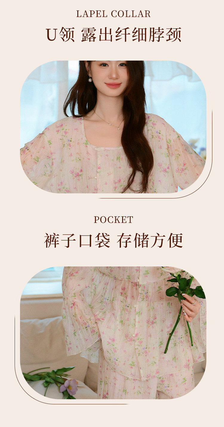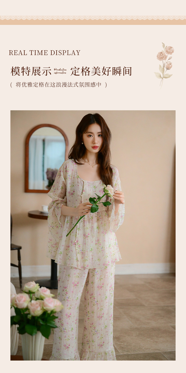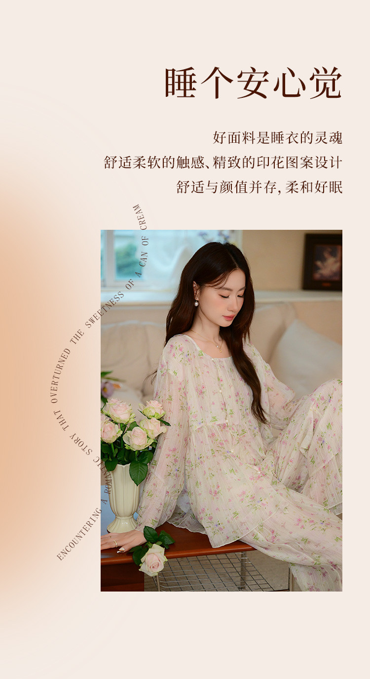 商品名称:【满印植物花卉】春秋款长袖长裤睡衣女士轻奢高级感家居服套装 184843