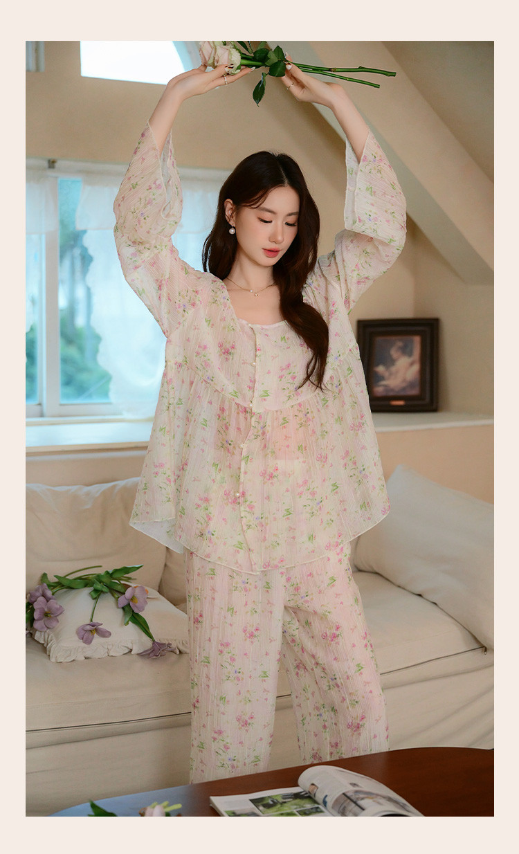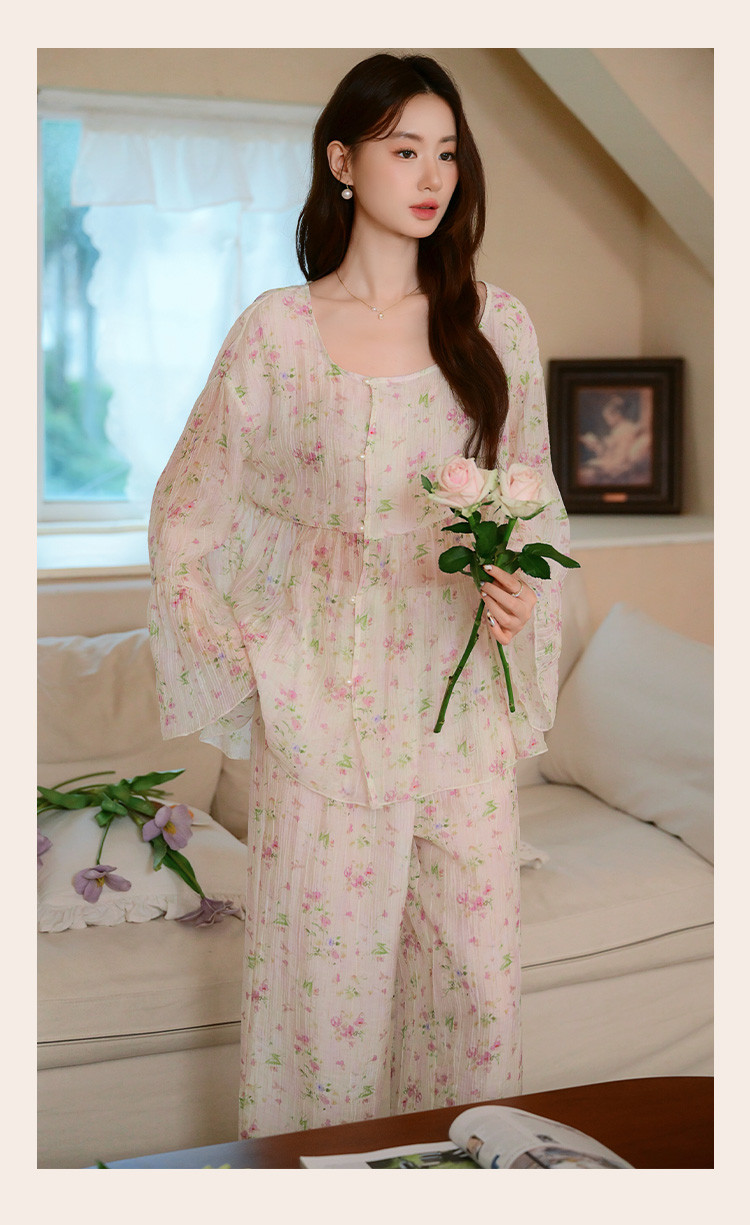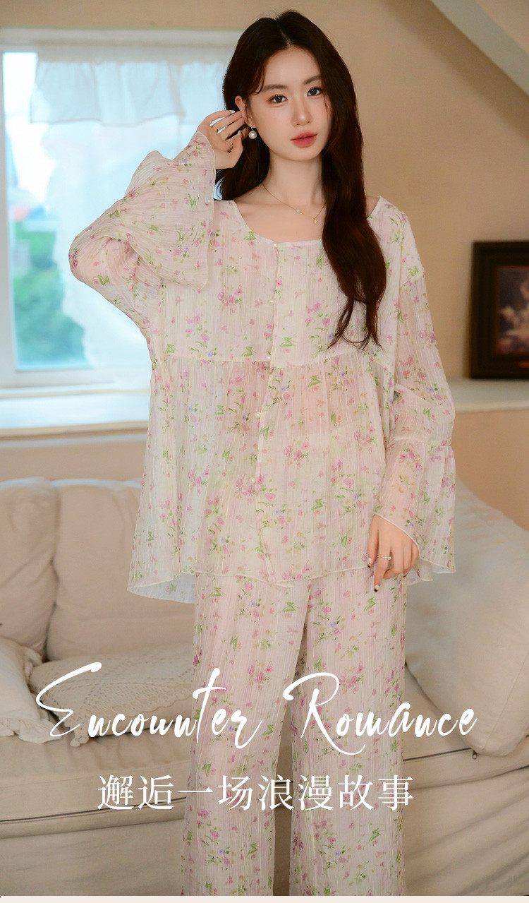 【满印植物花卉】春秋款长袖长裤睡衣女士轻奢高级感家居服套装 184843