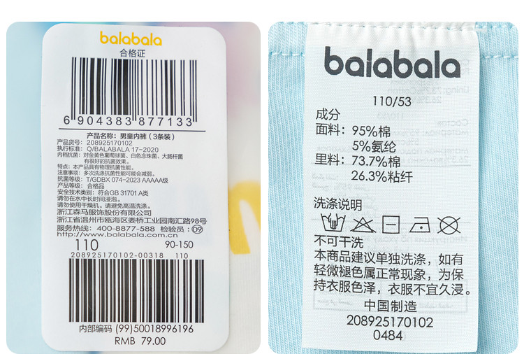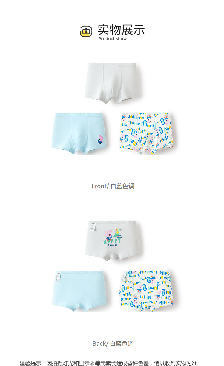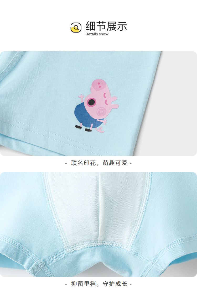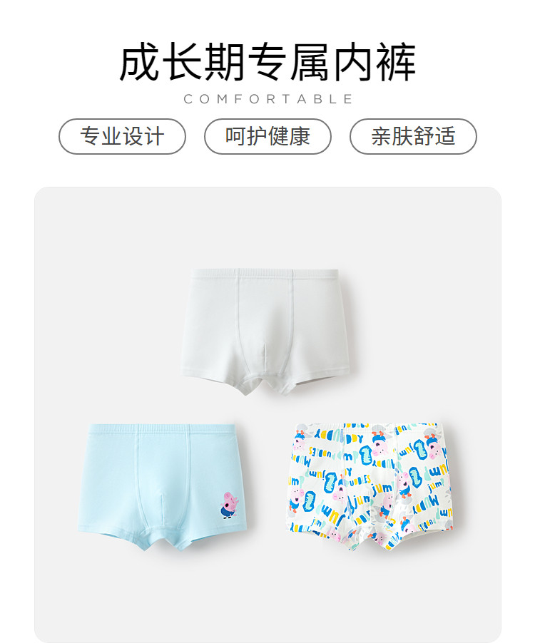商品名称:小猪佩奇IP儿童内裤成长期棉a类男童平角裤三条装宝宝抑菌短裤 377221