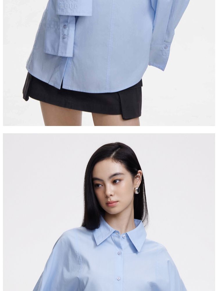 【松弛百搭】夏季含莱赛尔显瘦可拆卸披肩刺绣衬衫女 863450