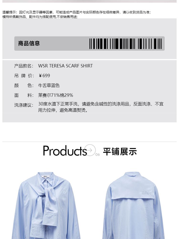 商品名称:【松弛百搭】夏季含莱赛尔显瘦可拆卸披肩刺绣衬衫女 863450