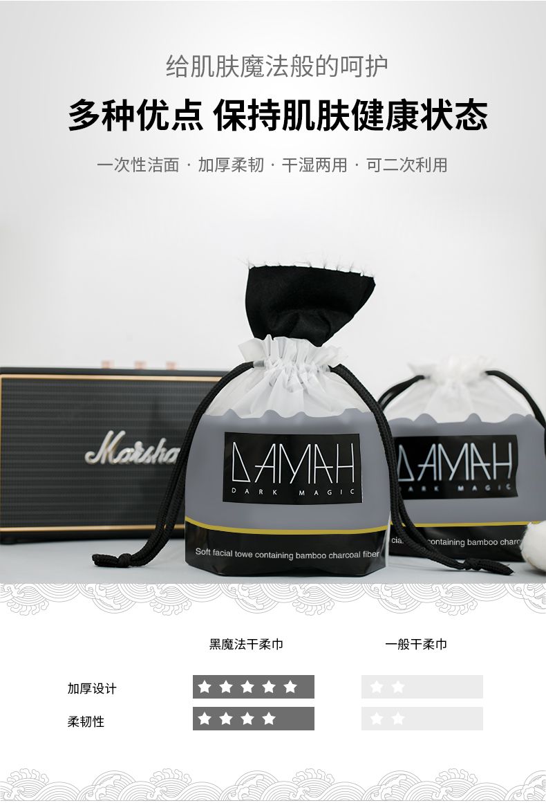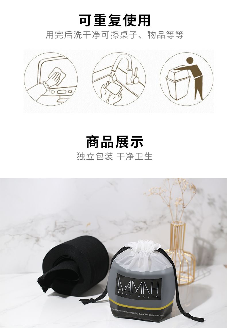 商品名称:DAMAH/黑魔法竹炭卷筒式一次性洗脸巾(约50抽)