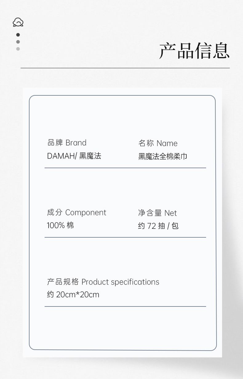 商品名称:DAMAH/黑魔法全棉抽取式一次性洗脸巾(72抽)