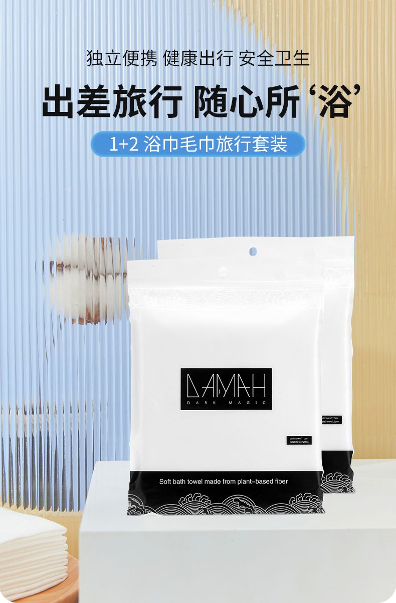 DAMAH/黑魔法一次性毛巾浴巾旅行套装(2条毛巾+1条浴巾)