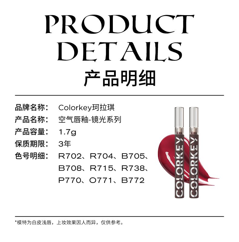 商品名称:Colorkey/珂拉琪 空气唇釉镜光系列 1.7g(2.5版小升级)