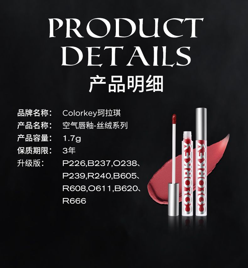 商品名称:Colorkey/珂拉琪 空气唇釉丝绒系列 1.7g(2.5版小升级)