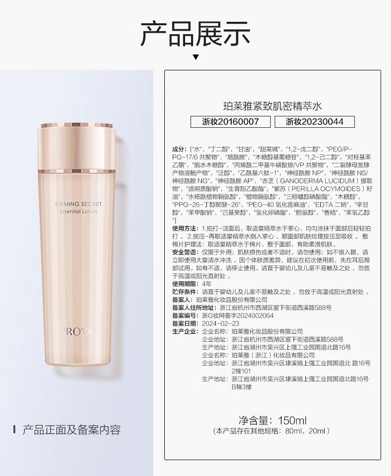 商品名称:Proya/珀莱雅 紧致肌密精粹水150ml