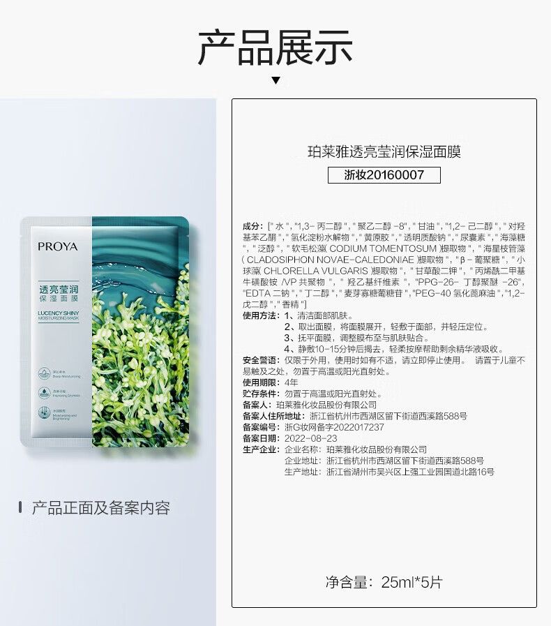 商品名称:Proya/珀莱雅 透亮莹润保湿面膜25ml*20片