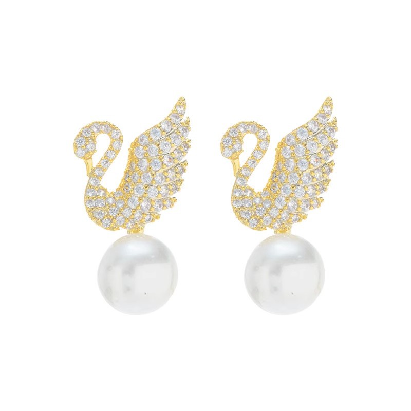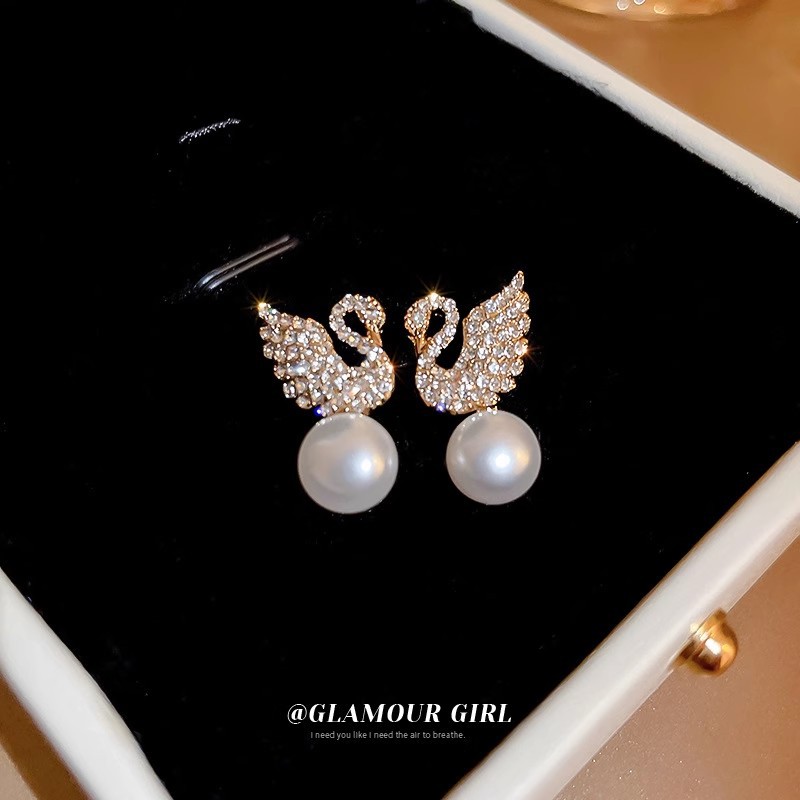 彤彤兔 s925银针韩版镶钻天鹅珍珠耳环时尚小巧百搭耳钉个性气质新款耳饰