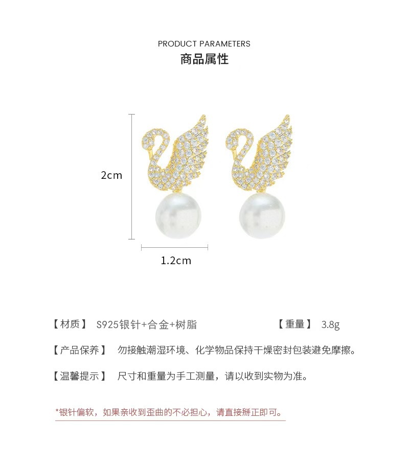 商品名称:彤彤兔 s925银针韩版镶钻天鹅珍珠耳环时尚小巧百搭耳钉个性气质新款耳饰