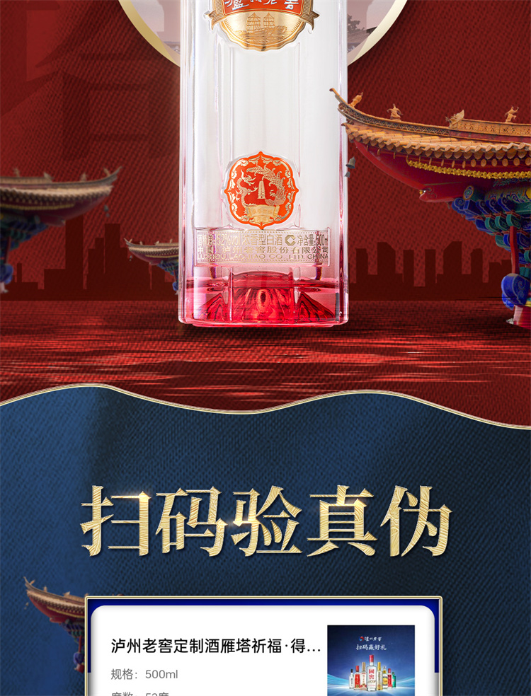 商品名称:【佳节送礼 商务宴请】泸州老窖 雁塔祈福 得福 浓香型白酒52度 整箱500ml*6瓶