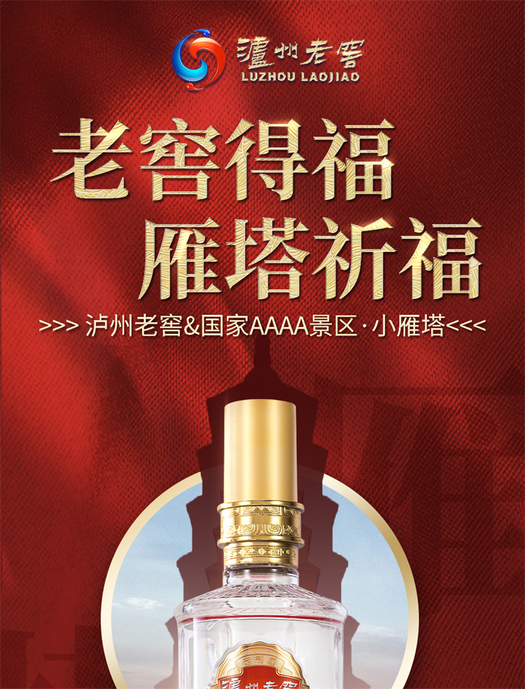 【佳节送礼 商务宴请】泸州老窖 雁塔祈福 得福 浓香型白酒52度 整箱500ml*6瓶