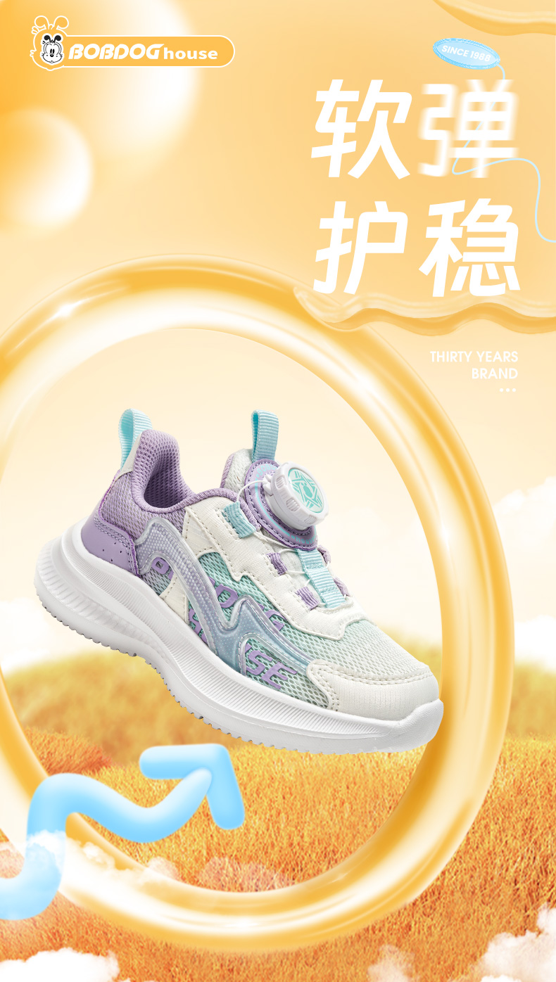 商品名称:巴布豆house童鞋秋季男女童潮流百搭网面休闲跑步鞋旋转纽扣易穿脱
