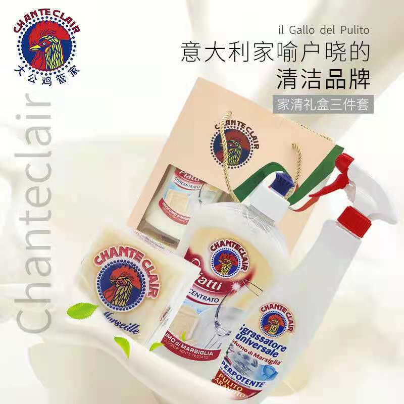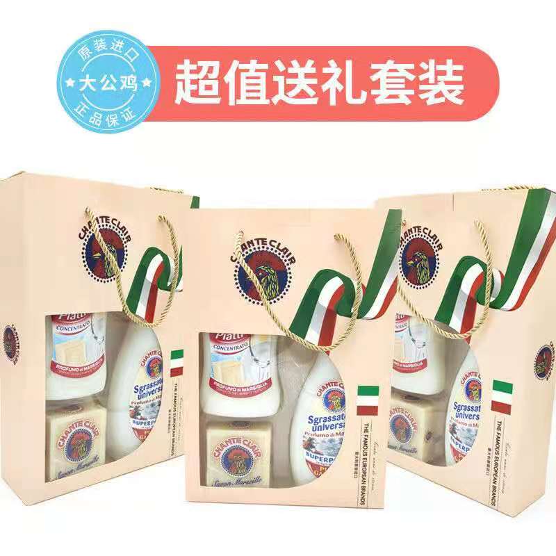 商品名称:意大利大公鸡家用厨房三件套(油污净625ml+洗洁精500ml+马赛皂300G)