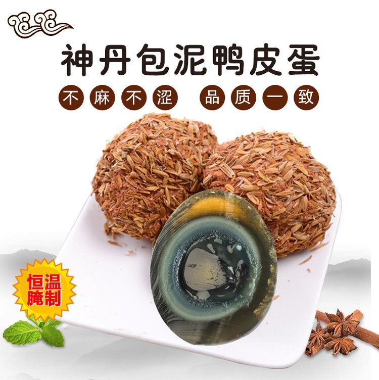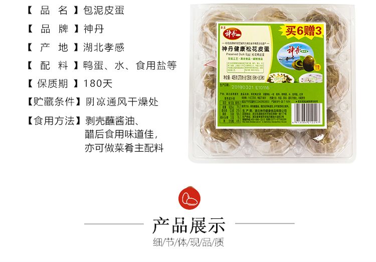 商品名称:神丹 传统腌制包泥松花鸭皮蛋 无铅工艺405g/盒9枚装