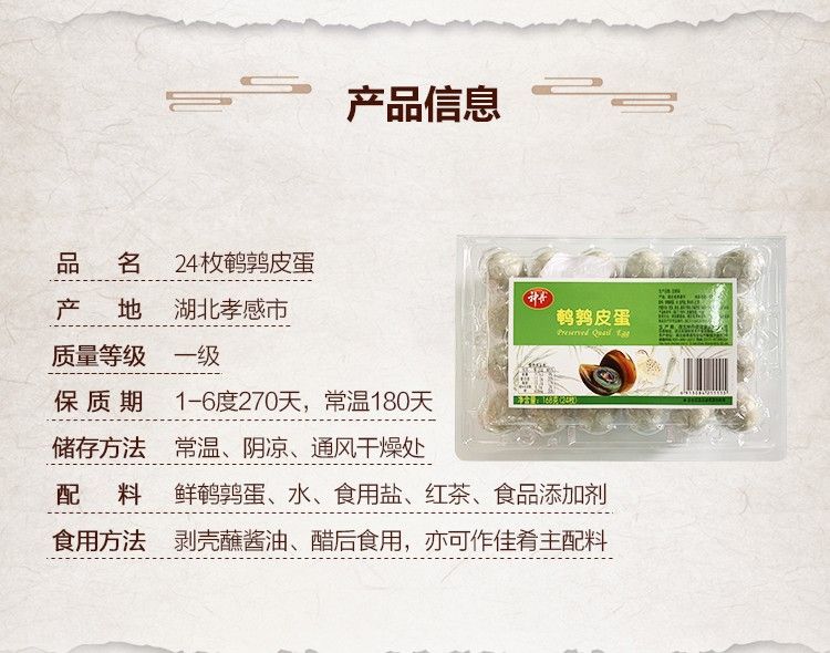 商品名称:神丹 鹌鹑松花皮蛋24枚装