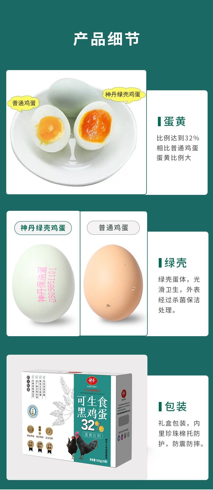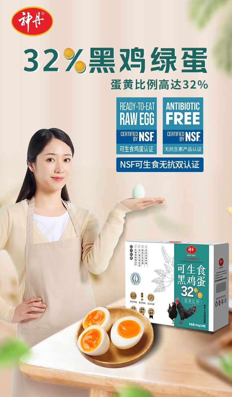 商品名称:神丹 可生食黑鸡绿蛋20枚装
